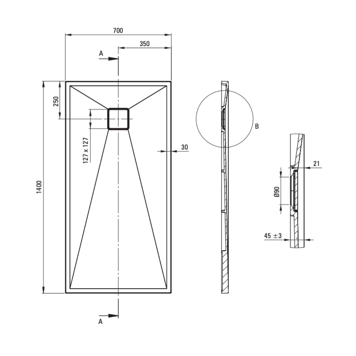 Dušialus Deante Correo 140×70 cm, must graniitkomposiit