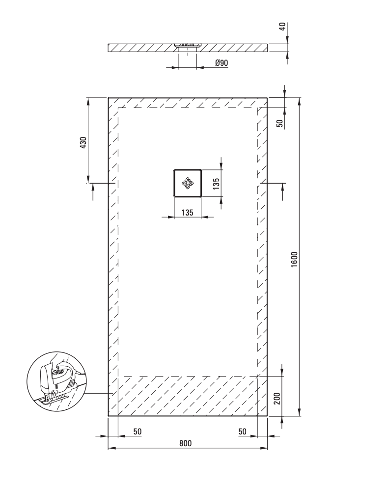 - Dušialust on võimalik lõigata, mis võimaldab seda sobitada mittestandardsetesse ruumidesse;