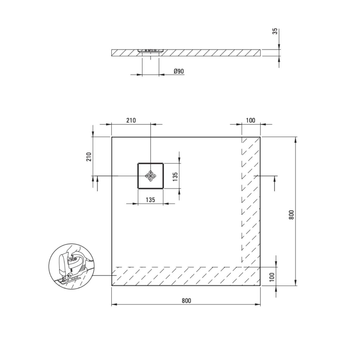 Mõõtmed: 800 x 800 x 35 mm (laius x pikkus x sügavus).