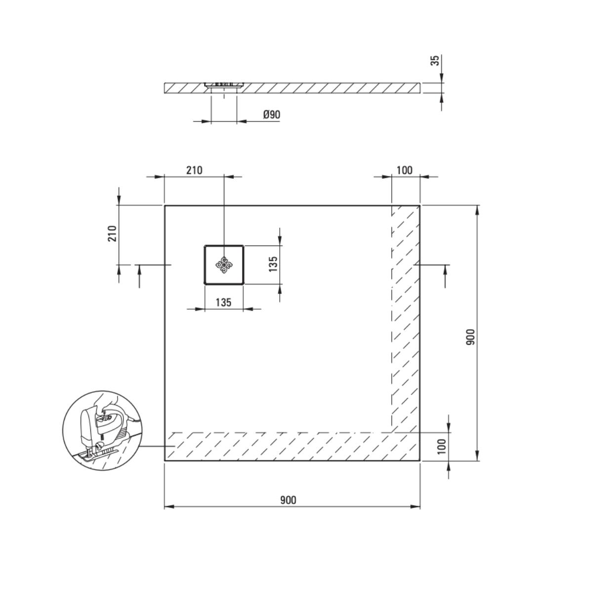 Mõõtmed: 900 x 900 x 35 mm (laius x pikkus x sügavus).