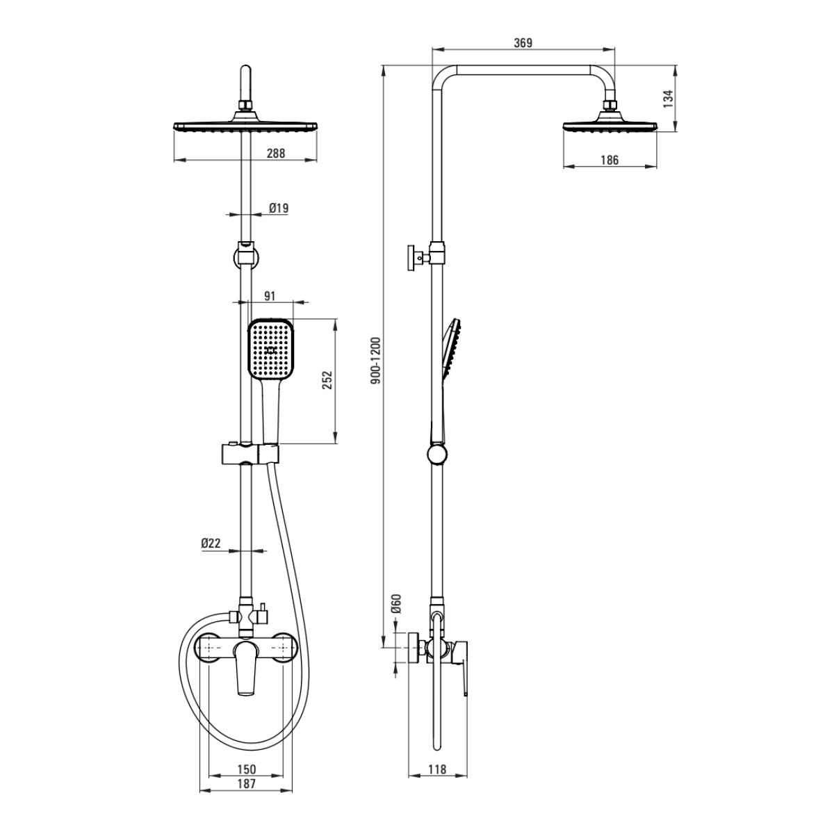 Deante Turbo on ümardatud nurkadega dušikomplekt, mis sialdab vihma- ja käsiduši koos segistiga. Anti-Calc süsteem vähendab katlakivi ladestumist ja pikendab dušipea eluiga.