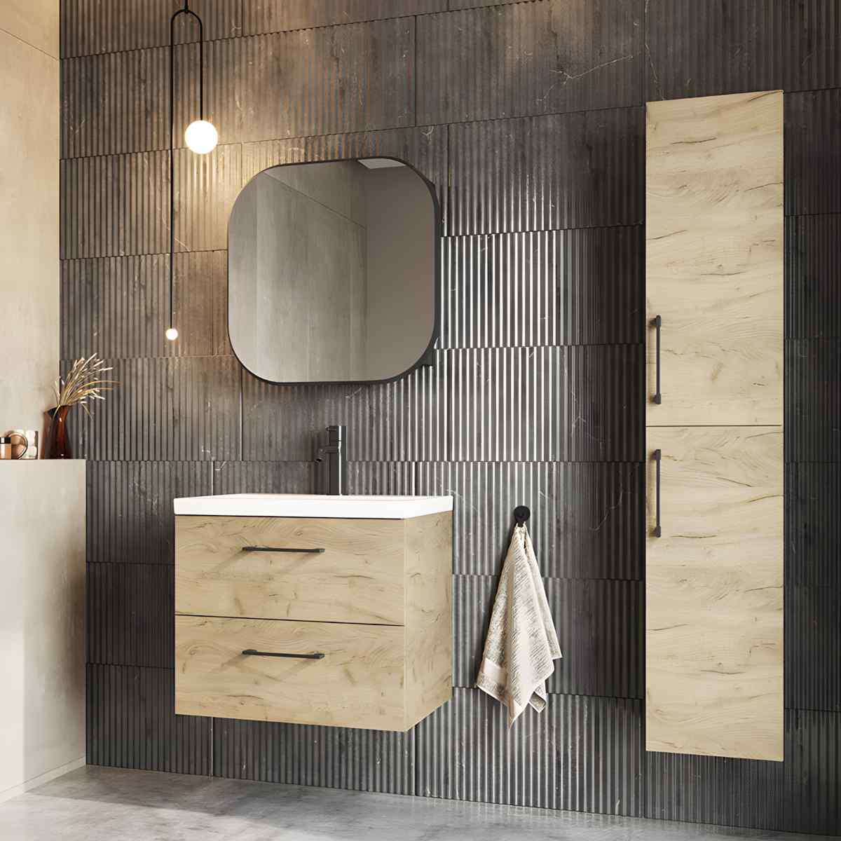Kõrge vannitoakapp FARO C30, artisan tamme dekoor, 30 cm, seinale kinnitatav
