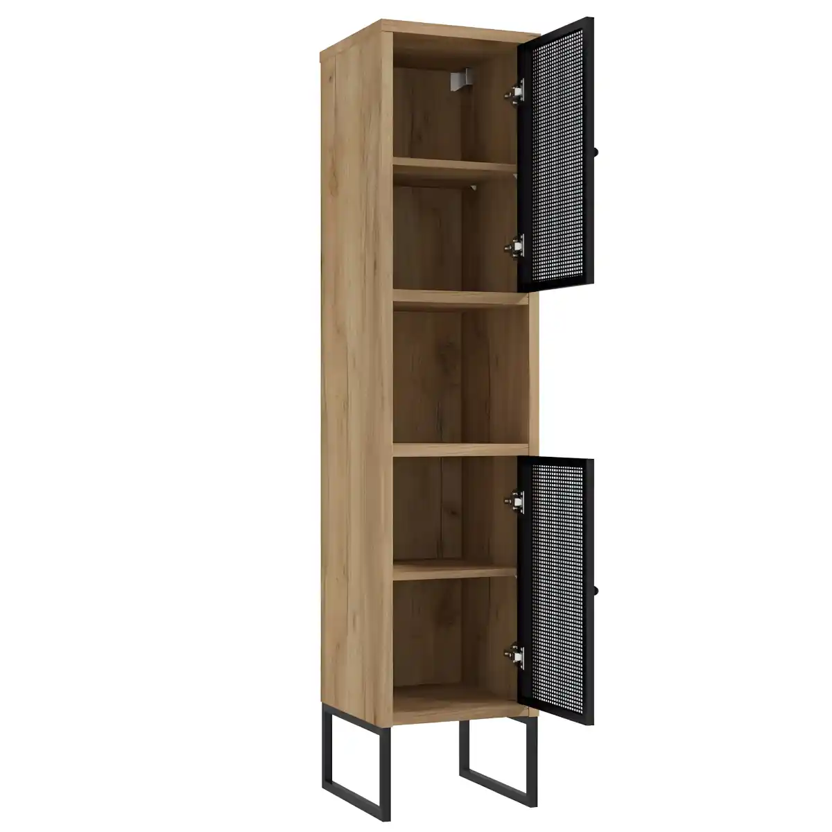 FIORA C35 on põrandal seisev kõrge vannitoakapp kahe uksega, mis ühendab pulbervärvitud, perforeeritud metallesipaneelid ja mustast lamineeritud plaadist korpuse – ideaalne loft– ja modernsesse vannituppa. Mõõdud: 30 × 170 × 38 cm (L × K × S). Sees on riiul, uksed sulguvad Soft Close-süsteemiga. Metalljalad ja -käepidemed on komplektis