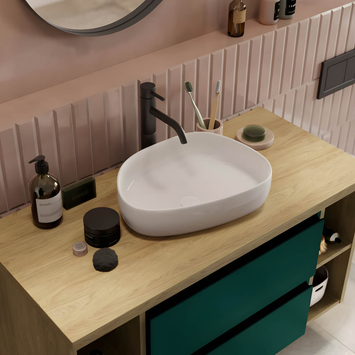 See tööpind on ideaalne alus pealtpaigaldatavale valamule või lihtsalt dekoratiivseks tasapinnaks, tuues vannituppa loomuliku kuldse tamme ilme.