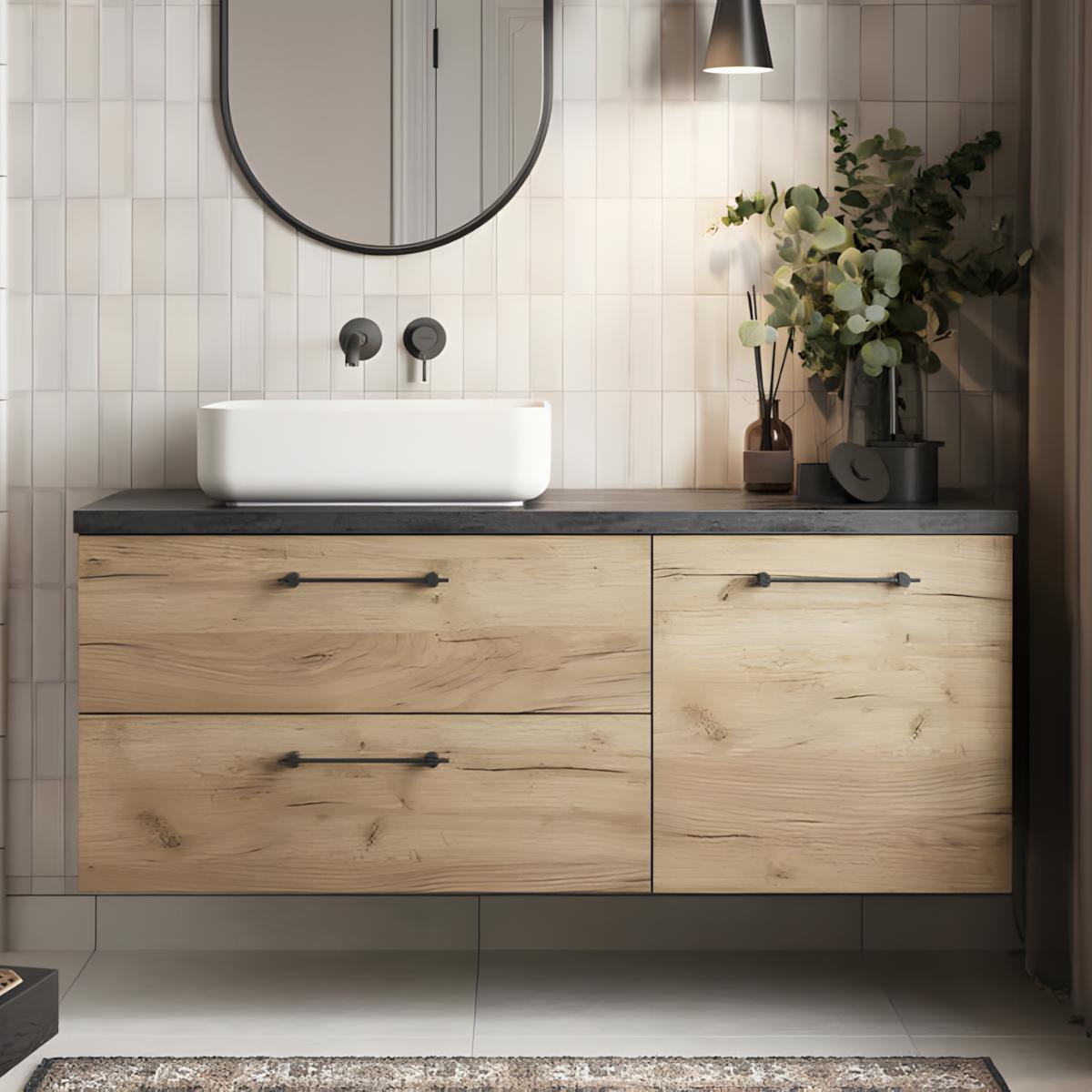 Tööplaati saab kasutada nii pinnapealse valamu aluspinnana kui ka vannitoakapi dekoratiivse kattepinnana. Kombineeri seda erinevate kappide laiustega, et saavutada ühtne ja stiilne terviklahendus.