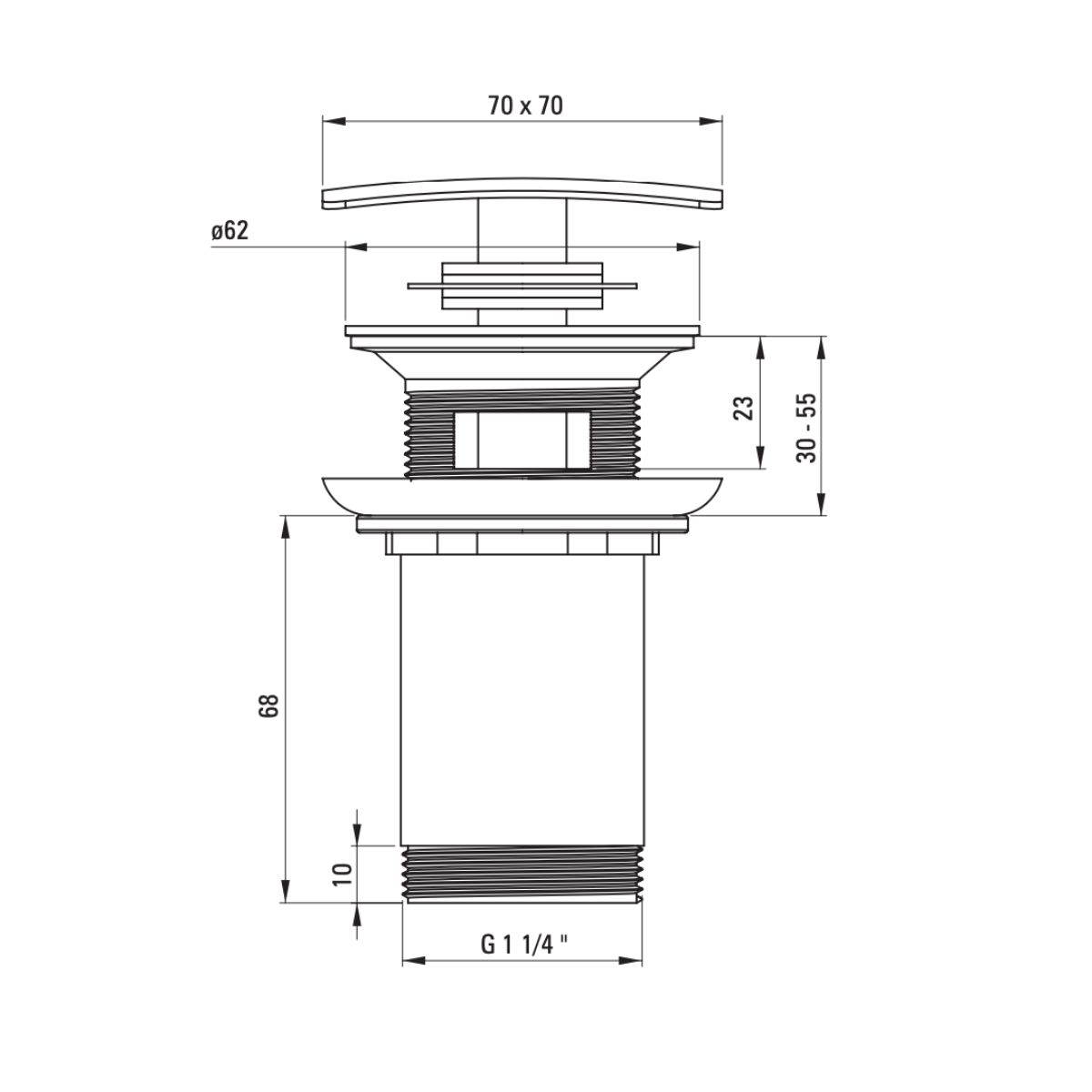 Matt must valamu äravoolupesa ühildub nii ülevooluga kui ka ilma ülevooluta valamutega. Korgi avamine ja sulgemine toimib click süsteemina ehk lihtsa vajutusega.
