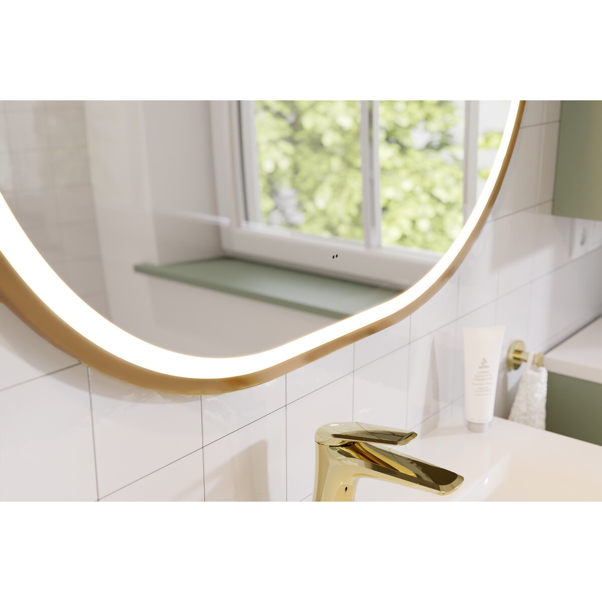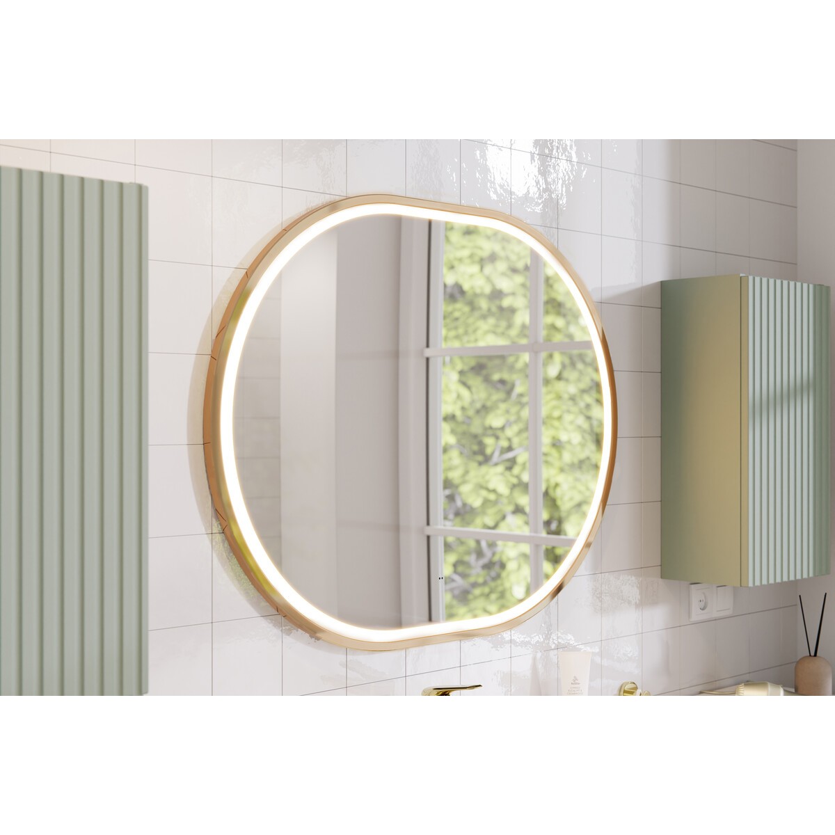 See stiilne LED-valgustusega peegel on suurepärane lisa igasse vannituppa. Kuldne raam lisab luksusliku puudutuse, samas kui LED-valgustus tagab ühtlase ja meeldiva valguse meikimiseks või raseerimiseks. Peegel on lihtne paigaldada ja sobib hästi erinevate vannitoastiilidega.