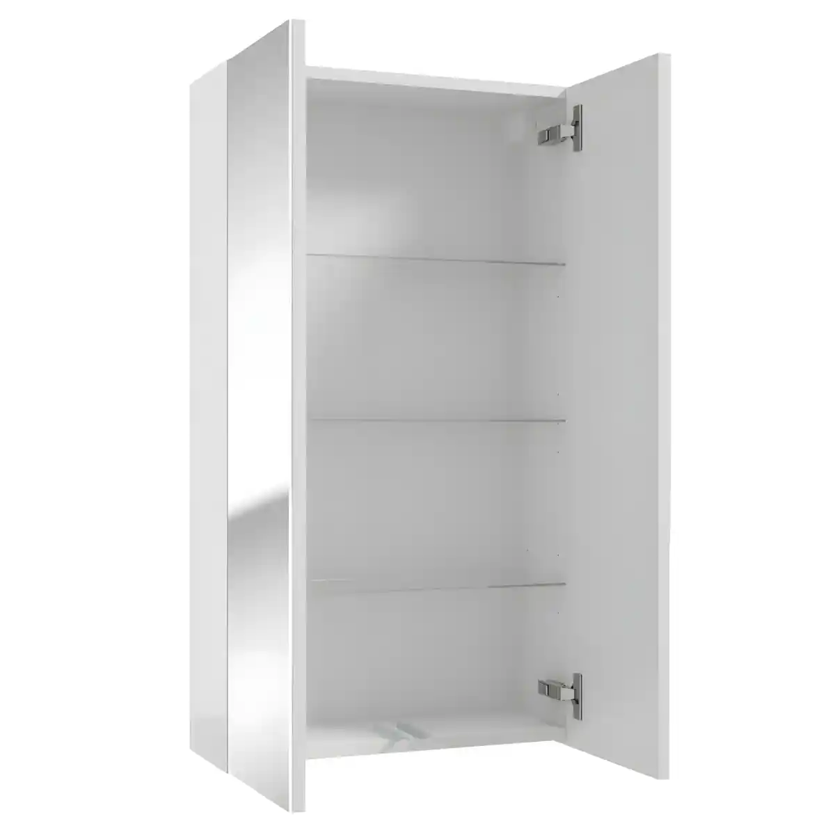 DUO E50 on seinale kinnitatav 50 cm peeglikapp kahe uksega. Ustel on Soft Close hinged ja Push to Open – õrn puudutus avab ukse, fassaad jääb käepidemeteta puhas. Korpuse lakitud valge kõrgläige külgpaneelid tõstavad vastupidavust ja hooldusmugavust. Sees on 3 kõrguses reguleeritavat riiulit igapäevatarvete korrastamiseks