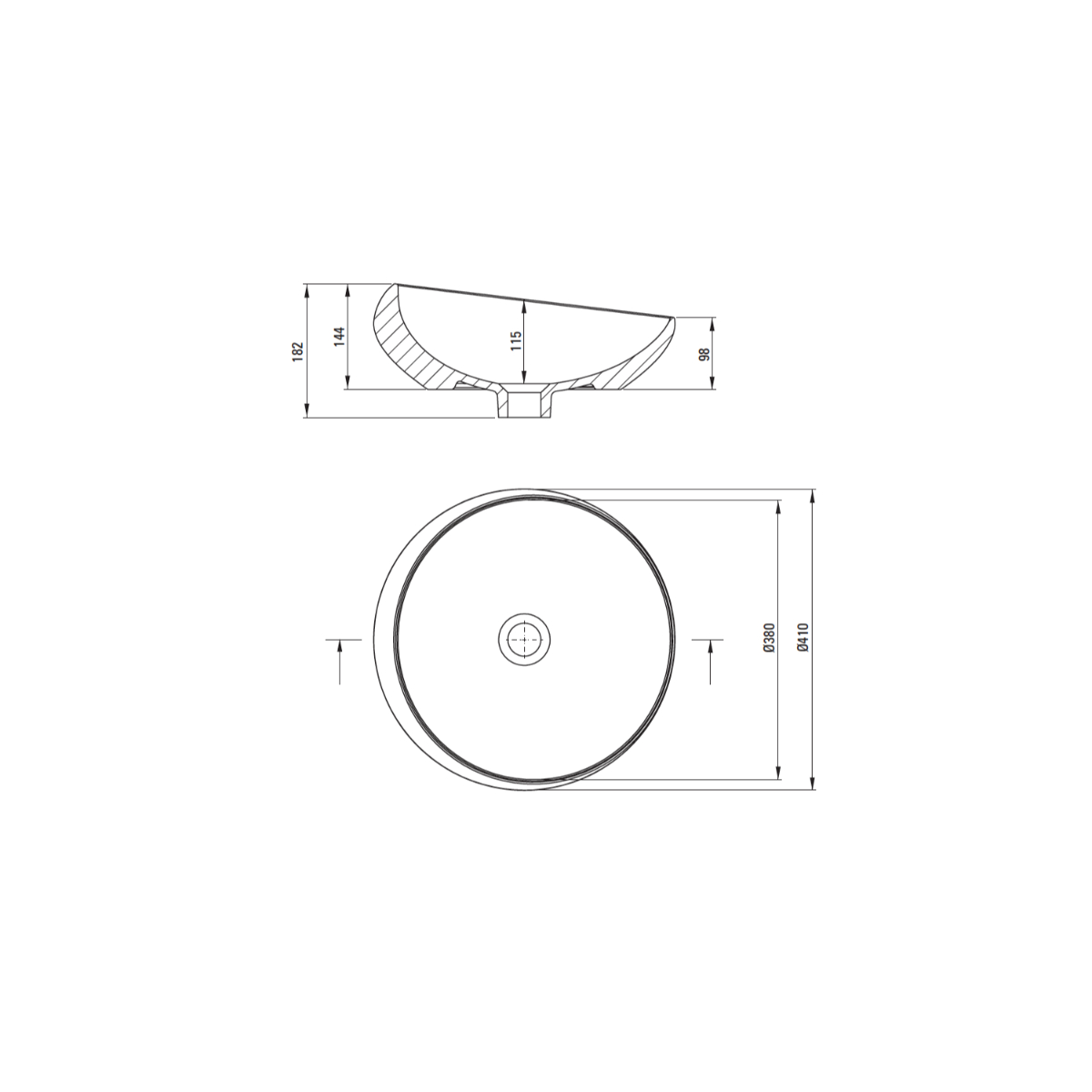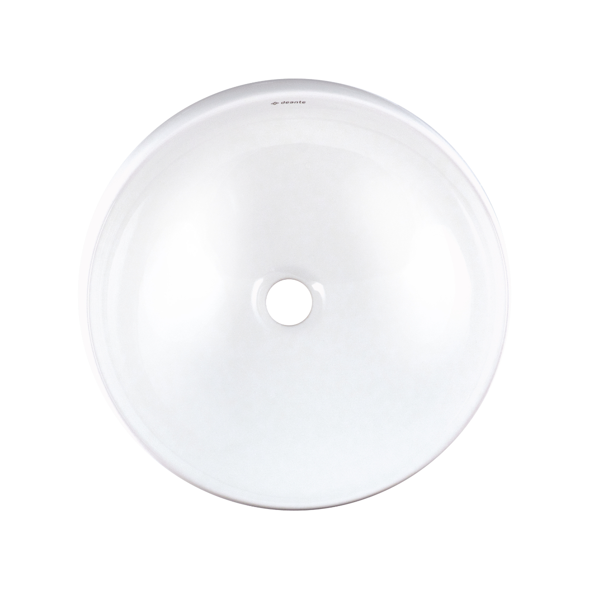 Mõõdud: Ø41 x 18,2 cm. Paigaldusviis: pealtpaigaldatav. Valamu on ilma ülevooluavata, mis rõhutab minimalistlikku ja puhta joonega disaini.