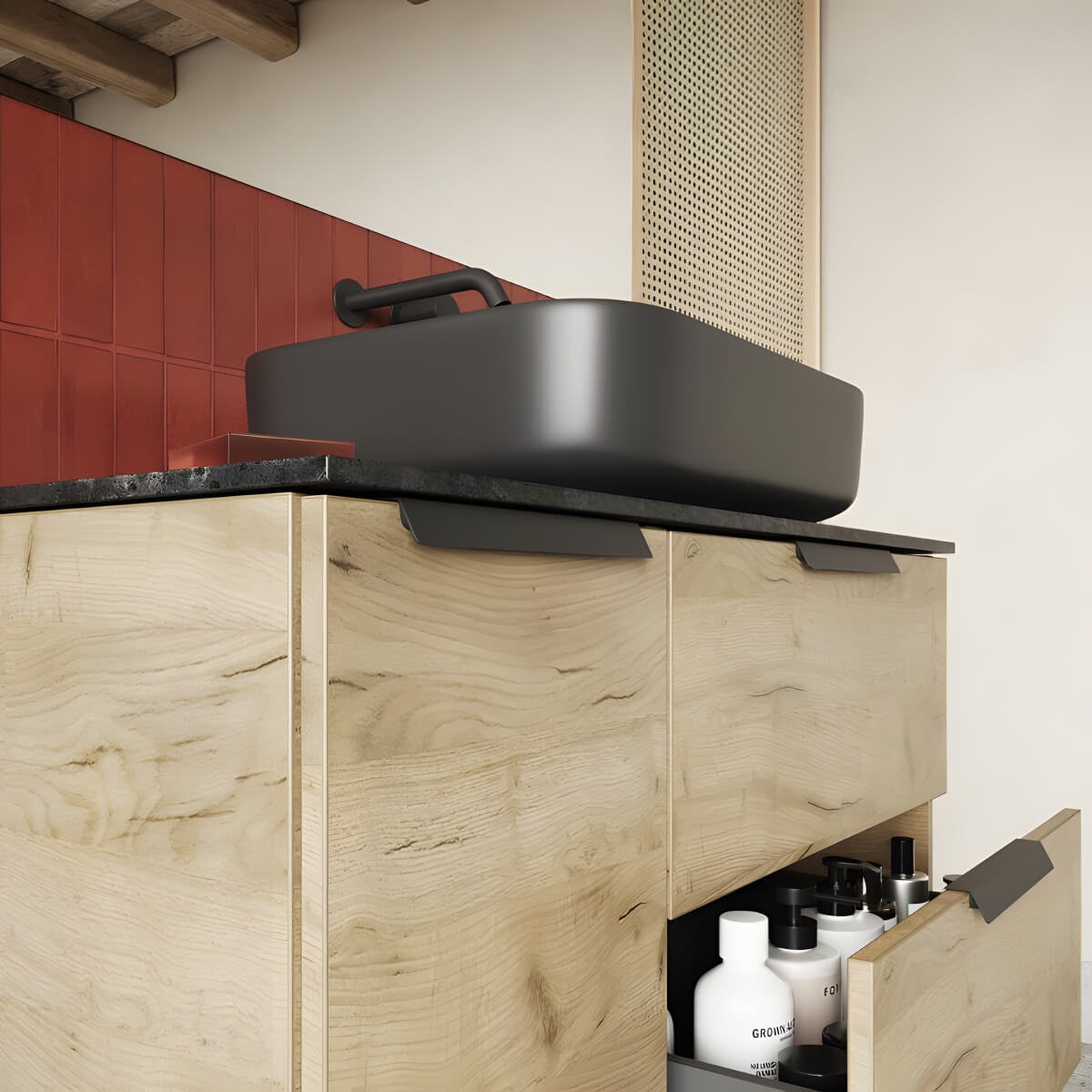 Pinnapealne valamu Teramo ühendab endas modernse disaini ja praktilisuse. Valamu puhtad jooned ja geomeetriline vorm loovad elegantse ilme, mis täiendab nii kaasaegseid kui ka klassikalisemaid vannitubasid. Valamu on valmistatud vastupidavast ja kergesti puhastatavast keraamikast, mis tagab pika kasutusea ja hügieenilisuse. Kuna valamule ei ole puuritud segistiava, saab seda kombineerida seinale või tööpinnale paigaldatava segistiga – see annab suurema vabaduse ja võimaluse luua just sinu vannituppa sobiv lahendus.