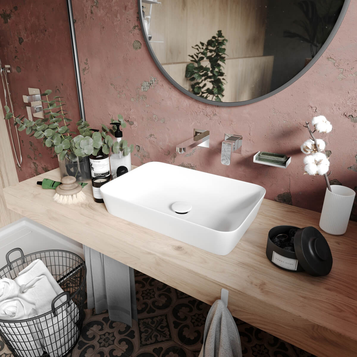 Pinnapealne valamu TESS ühendab modernse disaini ja praktilise vastupidavuse. Selle selged jooned ja sügav must viimistlus lisavad vannituppa elegantsi ning loovad pilkupüüdva kontrasti.