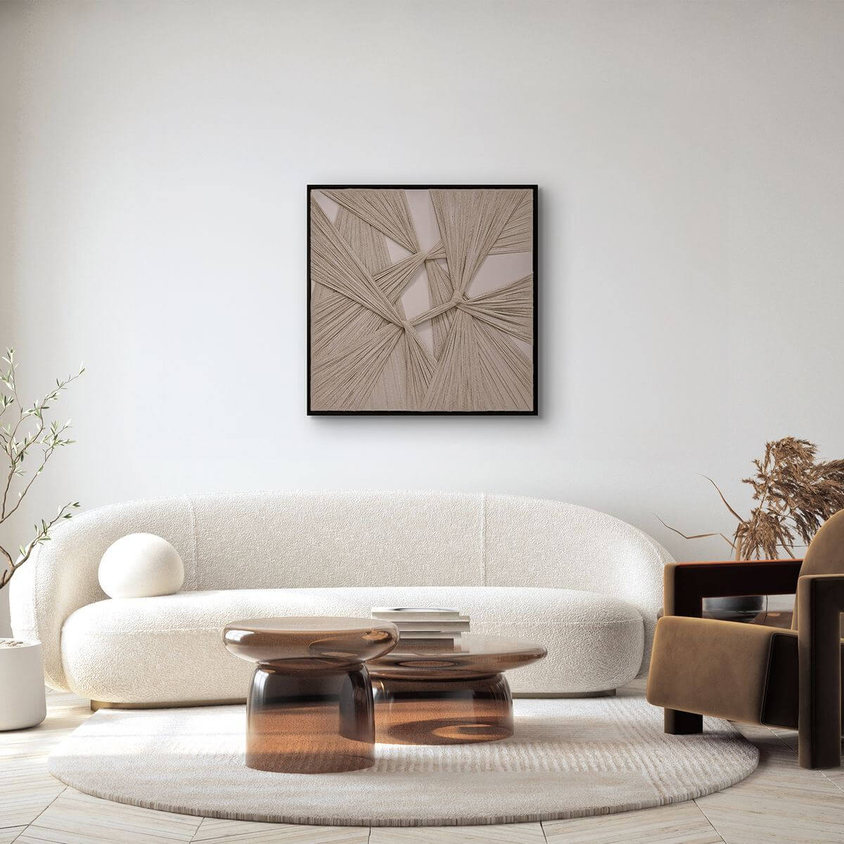 Põimunud kanga installatsioon Knot beež 80×80 cm, raamiga