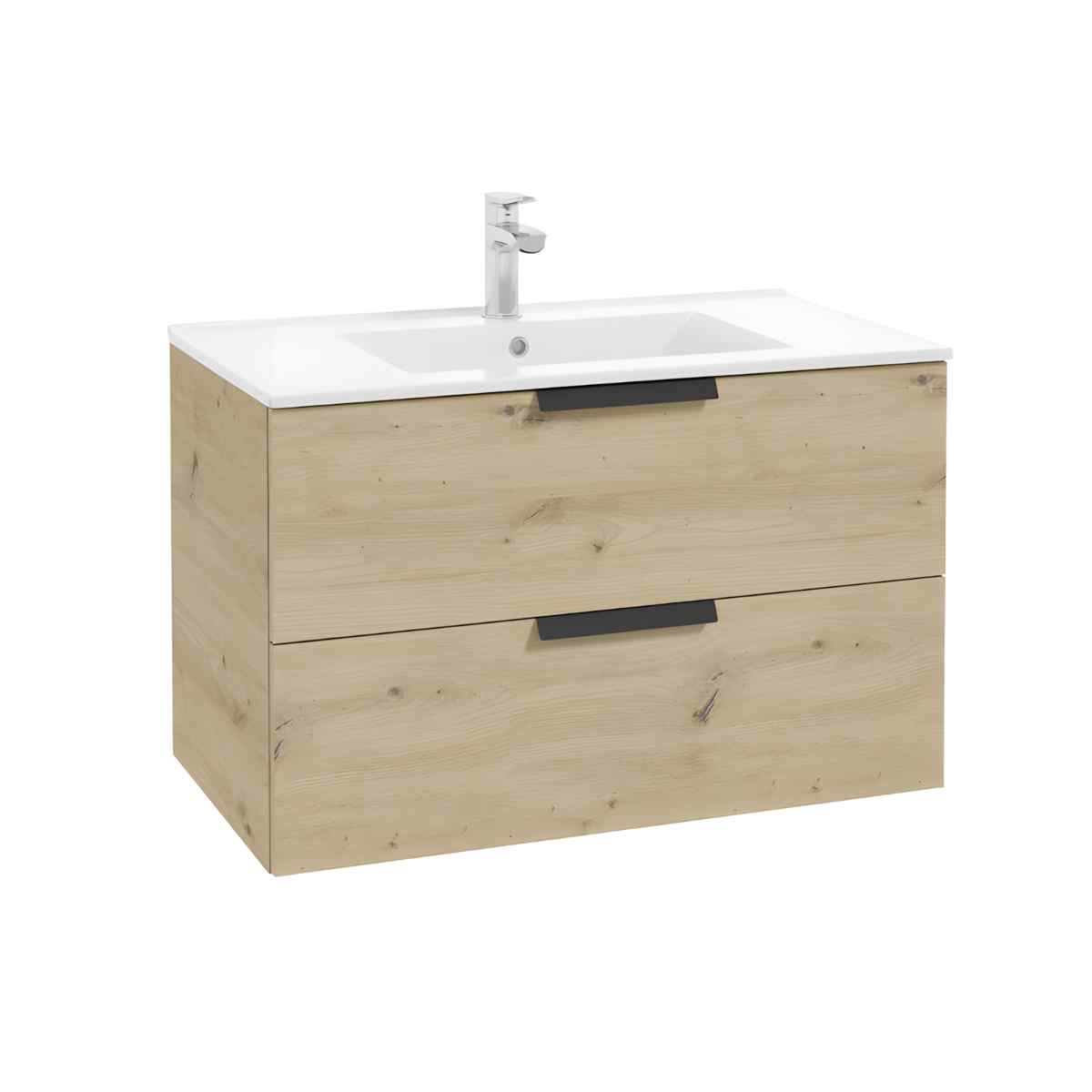 Kahe sahtliga riputatav valamukapp, mille 45 cm sügavus annab rohkem hoiuruumi ja võimaldab kasutada kappi moodulsüsteemis ühise tööpinna all. Soft Close tagab sujuva ja vaikse sulgumise, lakitud artisan tamme dekoor pind püsib kauem esinduslik ja on kerge hooldada.