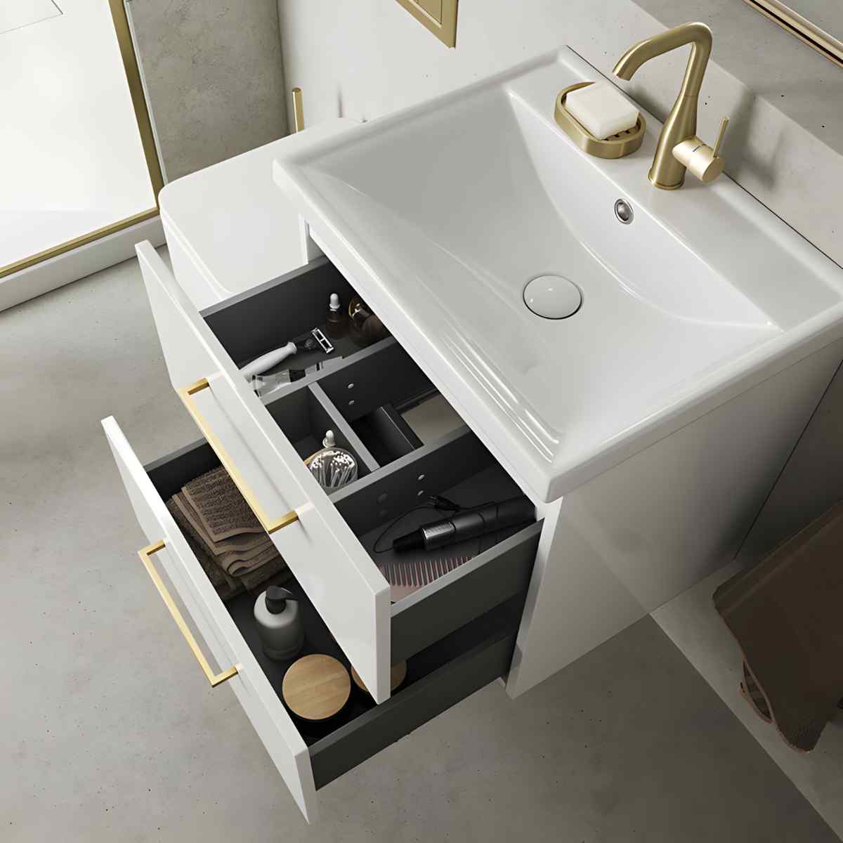 ✓ Kompaktne mõõt 80 × 50 × 40 cm väiksematesse vannitubadesse