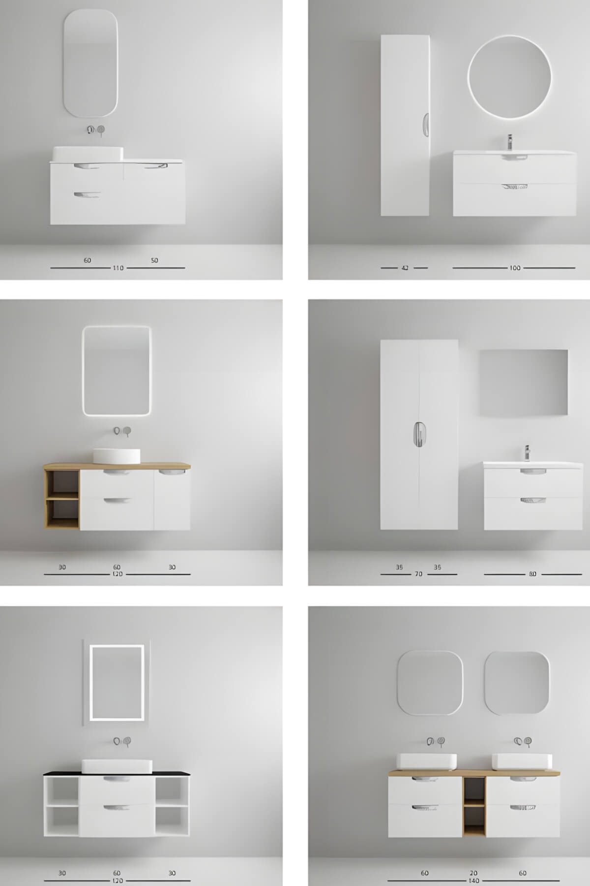 98 × 50 × 43,2 cm (L × K × S). Seinale kinnitatav; riputid reguleeritavad. Sobib mööblivalamutega, võimalik komplekteerida ka laminaat- või konglomeraat-tasapinnaga ja pealtpaigaldatava valamuga. Soovituslik kooskõla: tasapinnad 43,2 cm sügavusega ja seinakuubikud 41,2 cm.