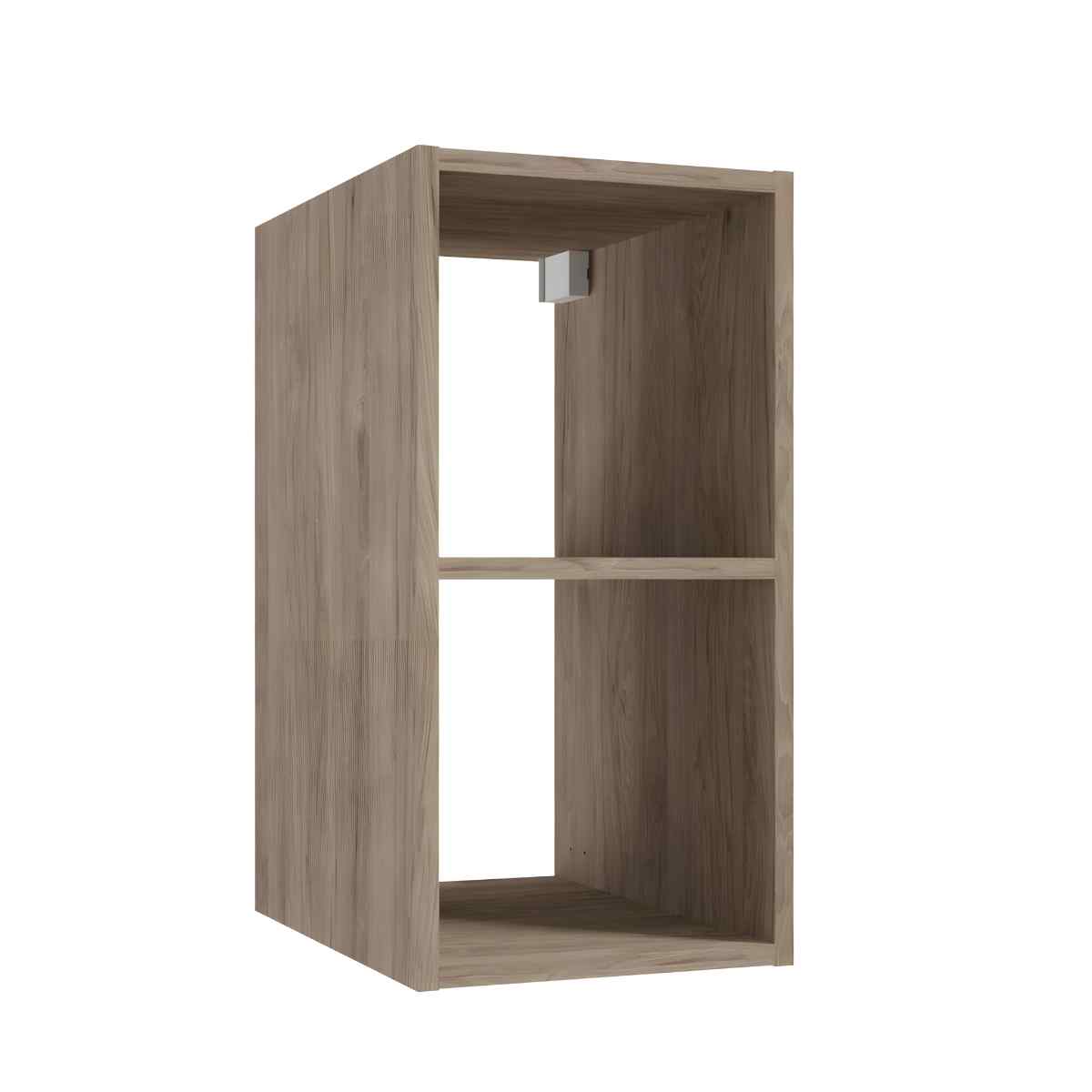 Lisab vannituppa avatud, kiiresti ligipääsetava hoiuruumi. 43,5 cm sügavus sobitub visuaalselt 45 cm kapiridadega (valamukapid ja tasapinna alused moodulid), nii et saad luua ühtseid modulaarseid kooslusi. Rockfordi pähkli dekoor toob ruumi rahuliku, looduslähedase tonaalsuse, matt pind ja peen puidusüü loovad elegantse ilme.
