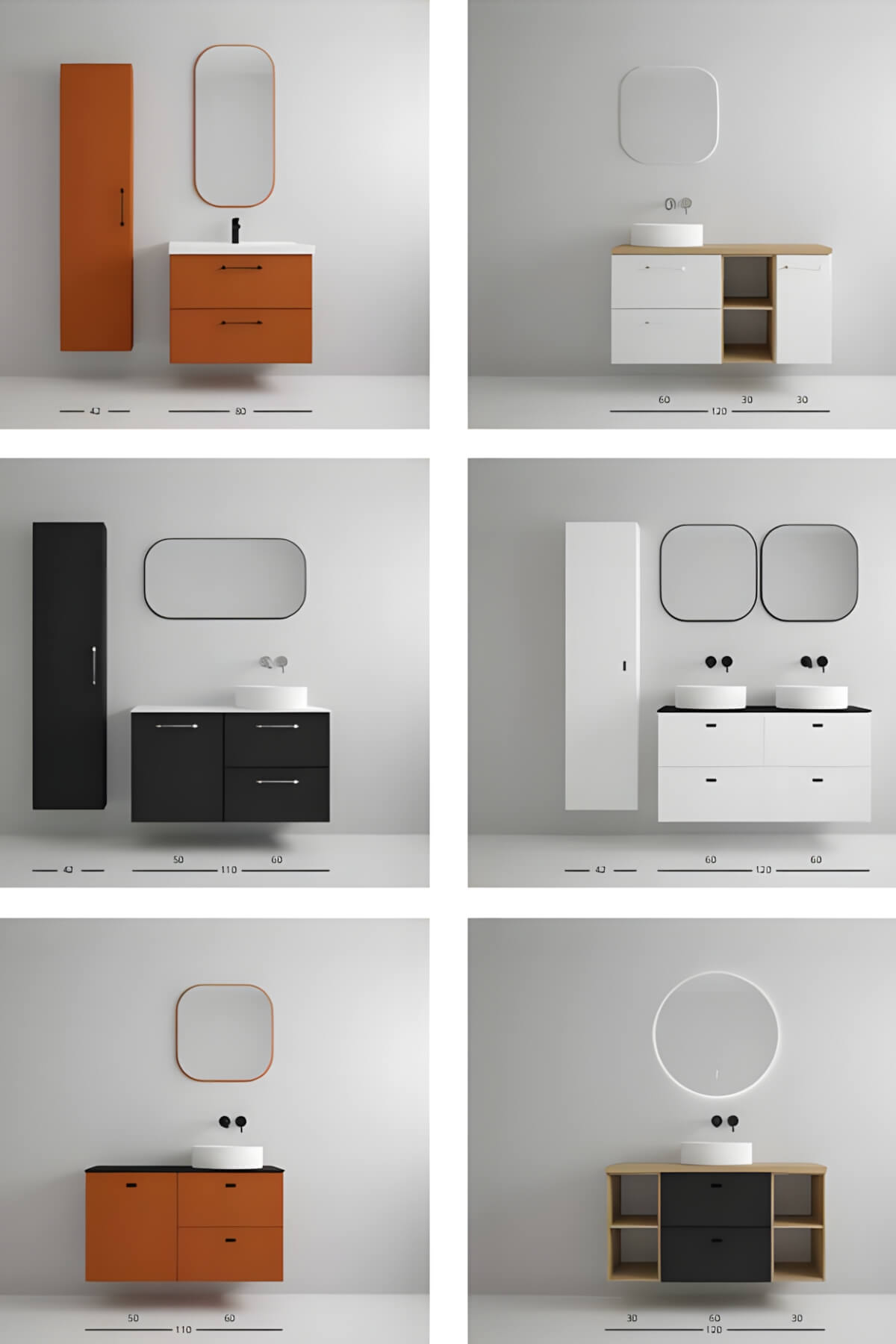 MO-RE D50 on seinale kinnitatav uksega valamukapp, mille pruun matt viimistlus ja puhas vorm sobivad nii modernsesse kui skandinaavialikku vannituppa. Mõõdud: 46,8 × 60 × 30,2 cm (laius × kõrgus × sügavus). 1 uks (avamissuund vasak/parem vahetatav), sees 2 riiulit. Viimistlus: must matt lakk.