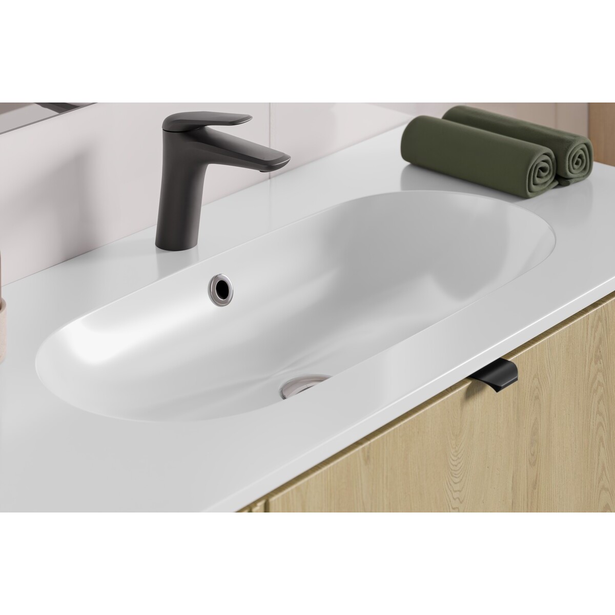 Pure ühe kambriga mööblivalamu on elegantne täiendus, mis sobib ideaalselt Ovalia Cremona kollektsiooni valamukappidega. Selle iseloomulikud ümarad nurgad sobivad hästi kappide pehmete joontega, luues ühtse ja kaasaegse kombinatsiooni. Valge, läikiv pind lisab kergust, sobitudes suurepäraselt kaasaegsete vannitubade esteetikaga. Mõõtmed 100 × 46 cm ja kõrgus 12 cm tagavad mugava igapäevase kasutamise, säilitades samas kompaktse vormi.