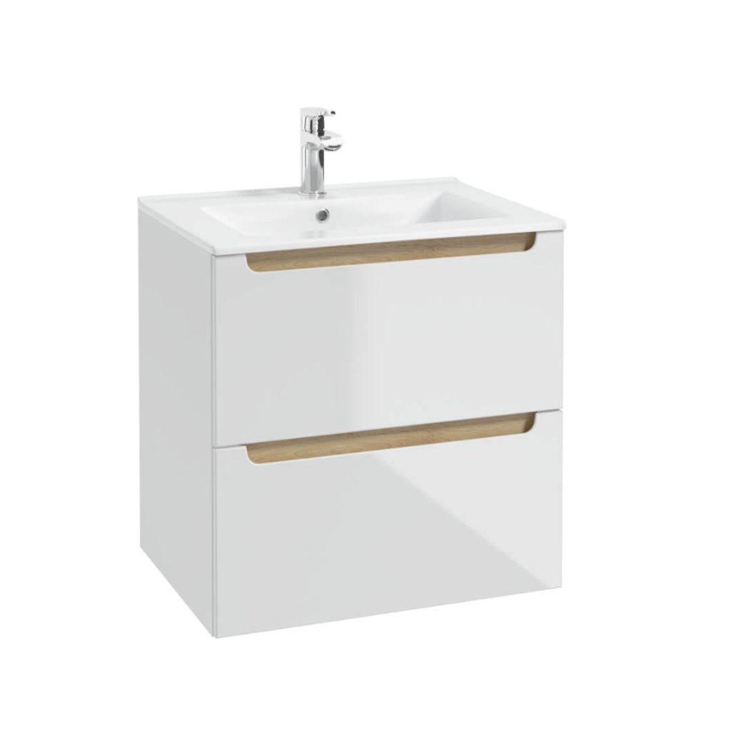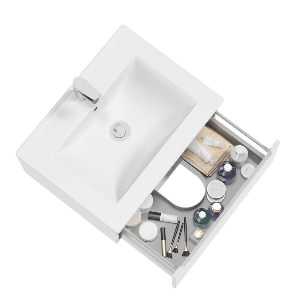 STILLA D60 on seinale kinnitatav 60 cm lai valamukapp kahe sahtliga. Sahtlid liiguvad täisväljatõmbel ja sulguvad Soft Close-süsteemiga; metallist küljed lisavad jäikust ja muudavad puhastamise lihtsaks. Esipinna freesitud käepideme taga. Mõõdud: 60 × 60 × 45 cm (L × K × S)
