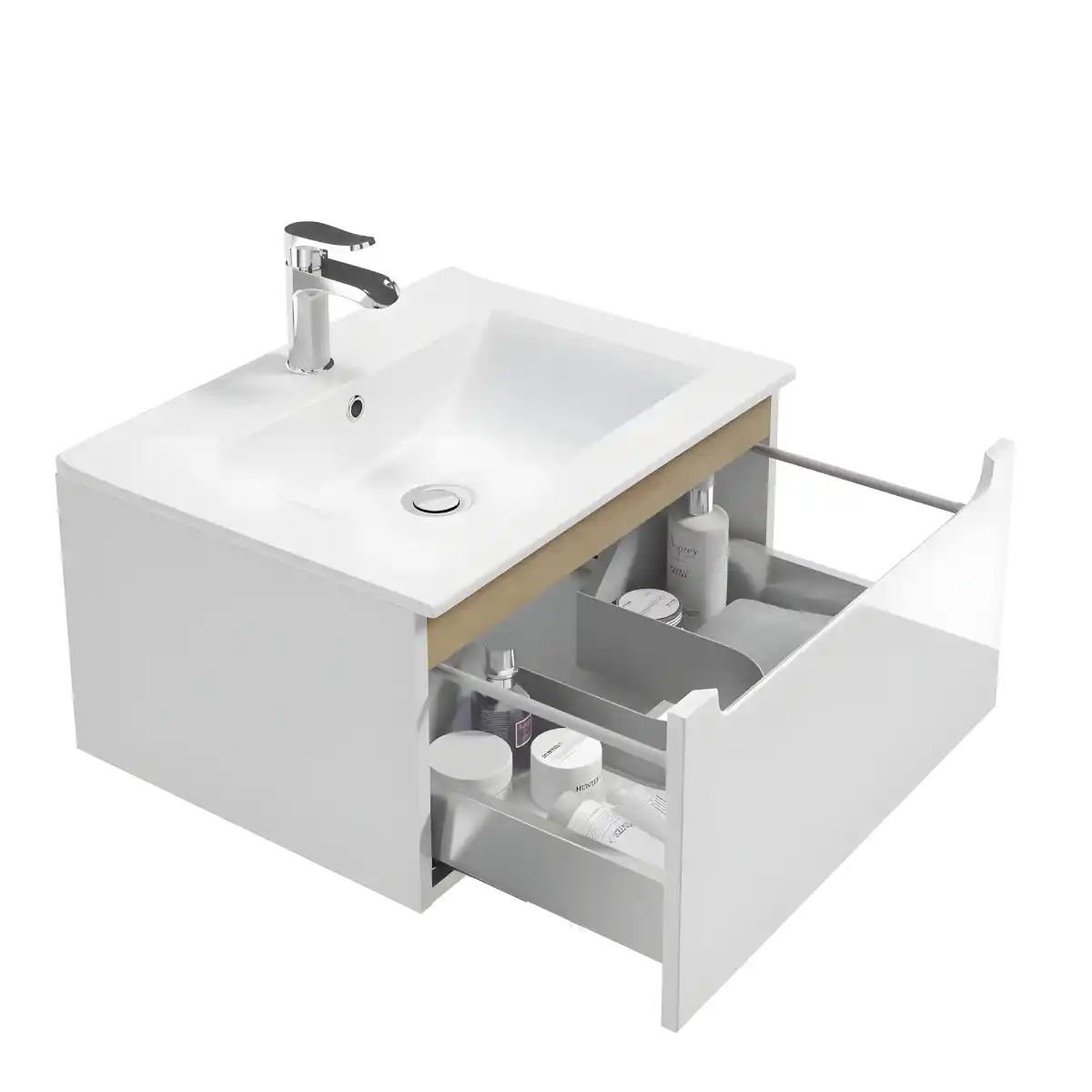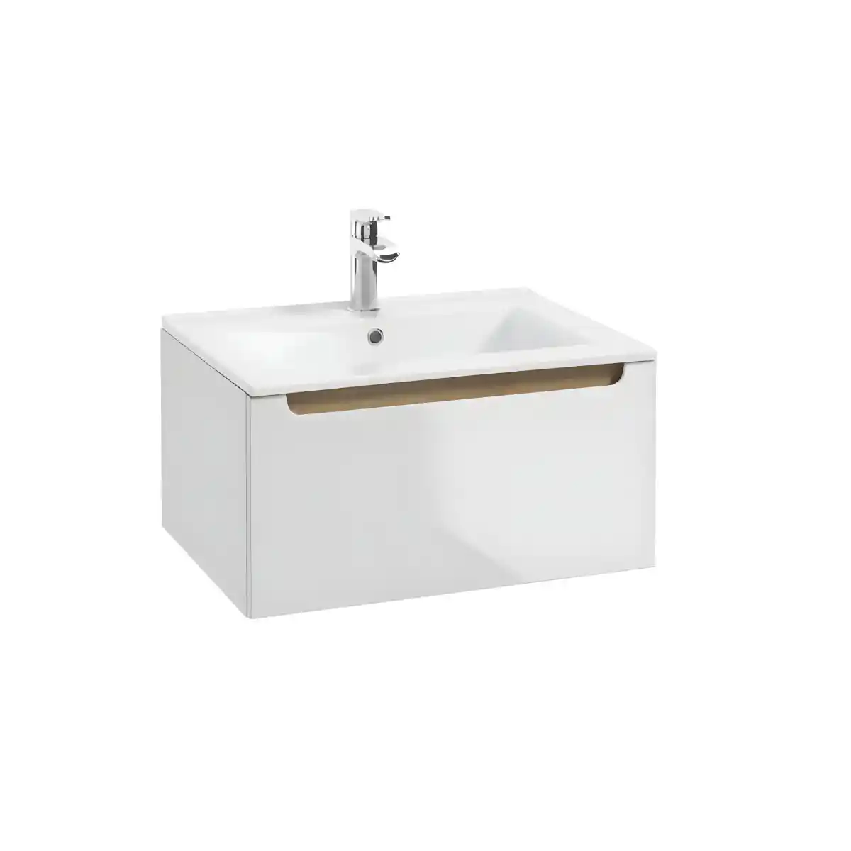 Madal, kuid praktiline valamukapp, mis sobib nii mööblivalamuga kui ka tasapinnaga pealt paigaldatava valamu jaoks. Täisväljatõmme annab ligipääsu kogu sahtli sügavusele, Soft Close vähendab müra ja kulumist. UV-lakk hoiab pinna kauem kauni. Modulaarse kollektsiooni osana saab kapi siduda laiemate tasapindade ja kuupidega, et lisada panipaika.