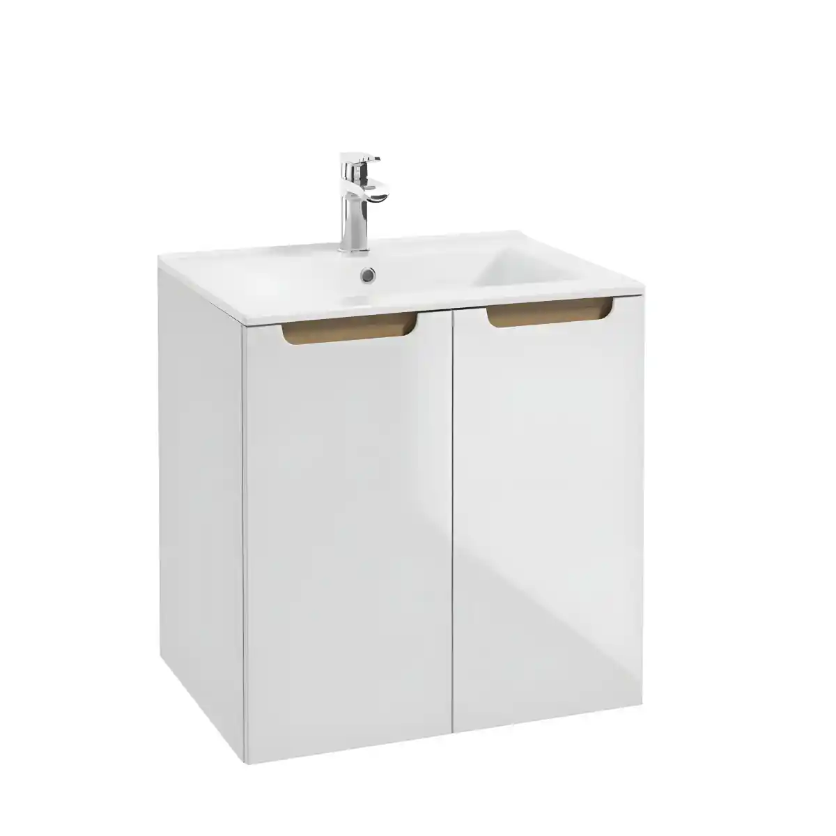 STILLA D60 on seinale kinnitatav 60 cm lai valamukapp kahe sahtliga. Sahtlid liiguvad täisväljatõmbel ja sulguvad Soft Close-süsteemiga; metallist küljed lisavad jäikust ja muudavad puhastamise lihtsaks. Esipinna freesitud käepideme taga. Mõõdud: 60 × 60 × 45 cm (L × K × S)