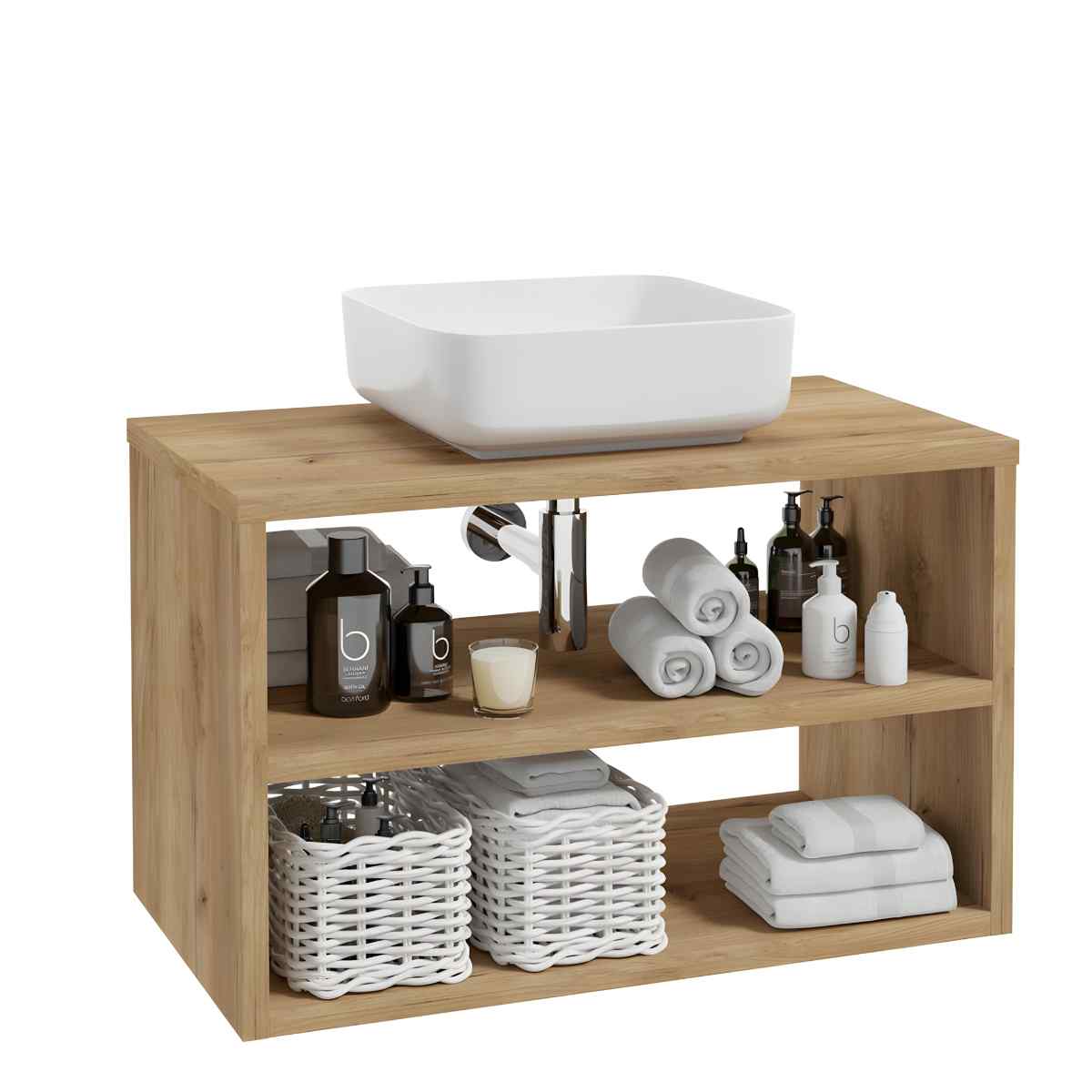 EMPOLI OPEN D80 on seinale kinnitatav 80 cm lai avatud valamukapp kahe riiuliga, mis hoiab igapäevased tarvikud käeulatuses. Mõõdud: 80 × 45 × 50 cm (L × K × S). Korpus on vastupidavast lamineeritud plaadist kuldtamme dekoris. Kapp on mõeldud mööblivalamu jaoks ning selle disain võimaldab eksponeerida dekoratiivset sifooni (sifooni ava tehakse paigalduse käigus). Valamu ei kuulu komplekti!