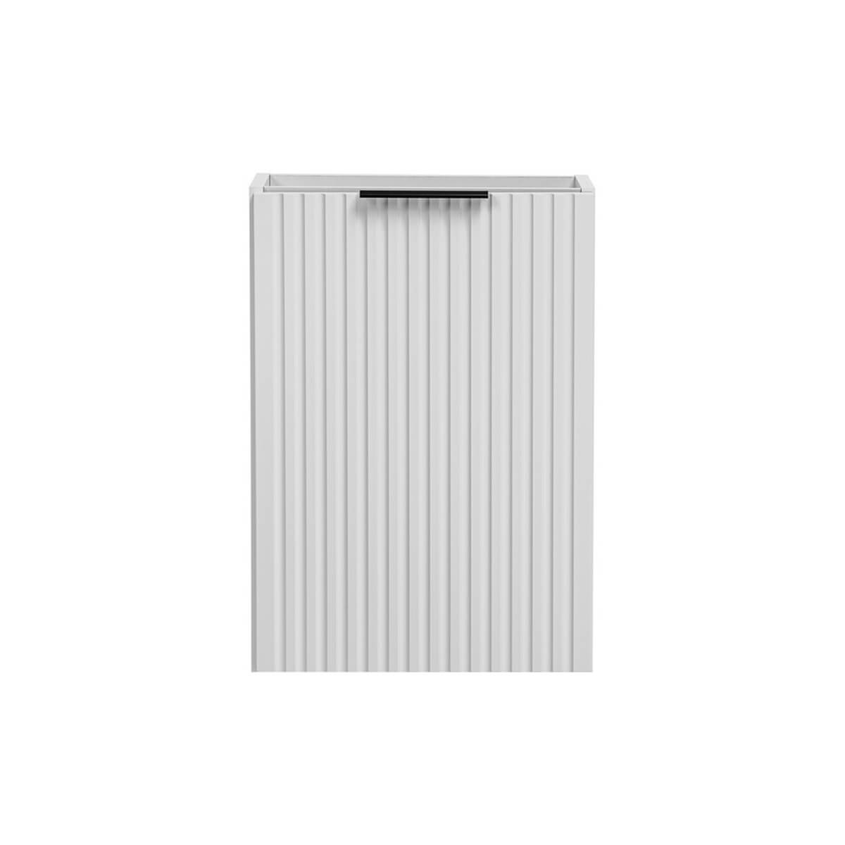 Ühe uksega valamukapp mõõtmetega 40×20 cm ADEL WHITE kollektsioonist on tõeline pärl vannitoamööbli seas. Iseloomulikud püstised sooned ja kolmes värvitoonis käepide – kuldne läige, kroomläige ja must matt – annavad sellele ainulaadse stiili. Valmistatud MDF-plaadist ja lamineeritud plaadist, on see vastupidav ja niiskuskindel, ideaalne vannitubadesse.