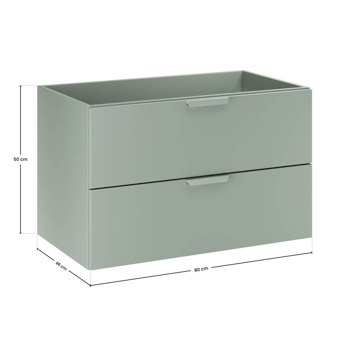 See valamukapp on praktiline ja stiilne lahendus sinu vannituppa. Roheline matt värv sobib hästi erinevate interjööridega ja loob värske atmosfääri. Kaks sahtlit pakuvad piisavalt ruumi, et hoida kõik vajalik käeulatuses.
