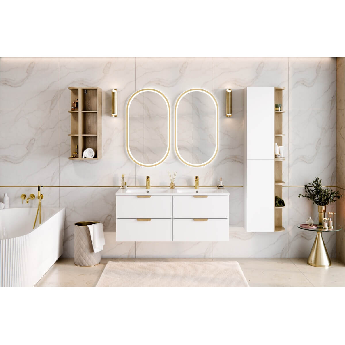 See valamukapp sobib hästi väiksemasse või keskmise suurusega vannituppa, kus on vaja praktilist hoiustamislahendust. Valge matt viimistlus on ajatu ja sobib paljude erinevate stiilidega.