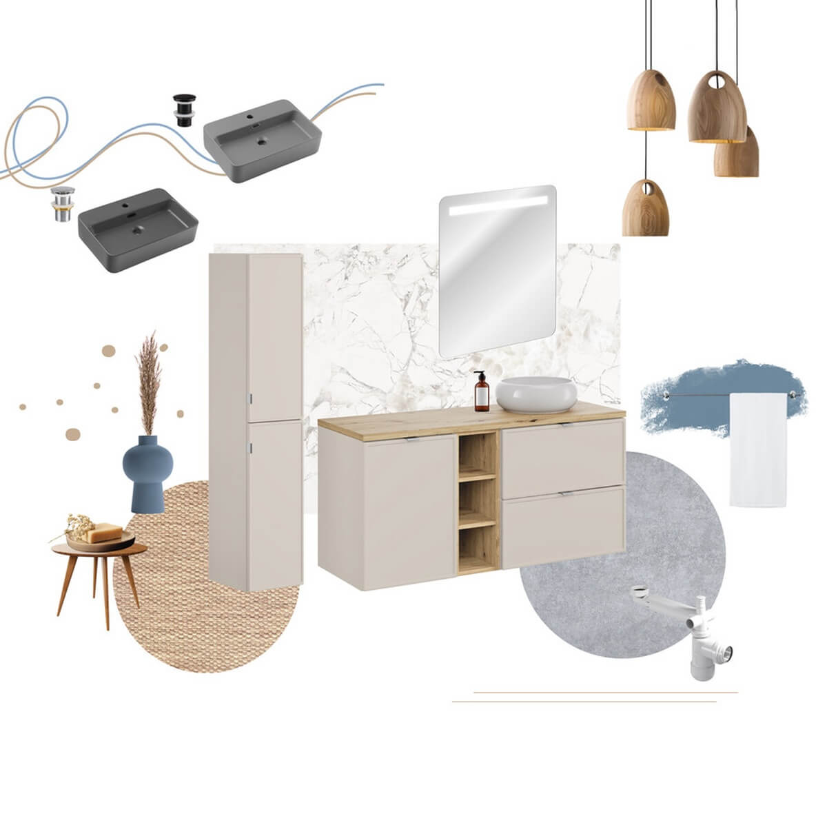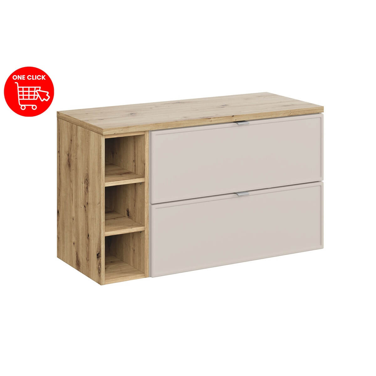 Komplekti kuuluvad elegantne valamukapp (BELLA CASHMERE 82-80-46-2S), vastupidav töötasapind (ARTISAN UN 89-100-46) ja praktiline kapp töötasapinna alla (ARTISAN UN 81-20-44). Selle mööblikomplektiga saate luua tervikliku ja elegantse vannitoa, mis rõõmustab kõiki pereliikmeid ja külalisi.