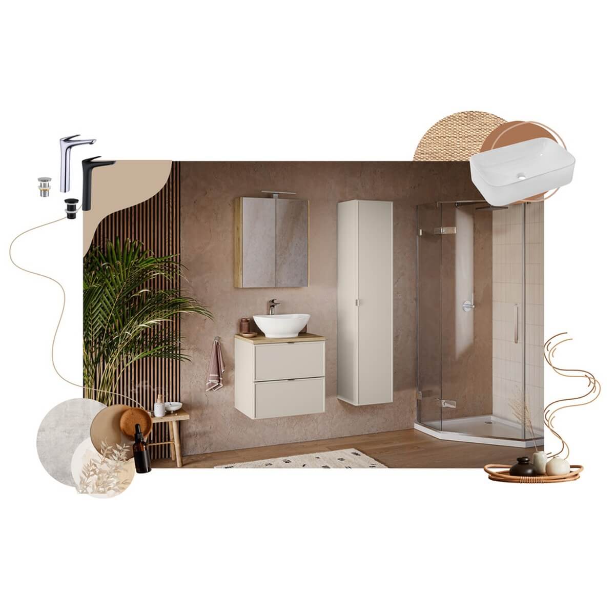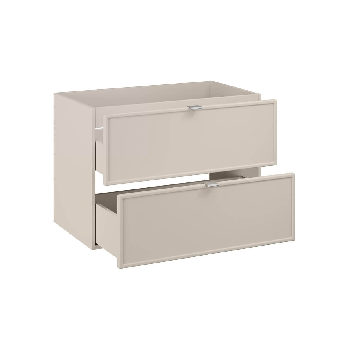 80 cm laiune kahe sahtliga valamukapp Bella Cashmere kollektsioonist sobib hästi nii modernsesse kui ka klassikalisse vannituppa. Mööbel on viimistletud õrna kašmiiritooniga, mis annab ruumile pehme ja harmoonilise ilme. Iseloomulikud soontega esipaneelid lisavad sellele rafineeritud stiili. Komplekti kuuluvad käepidemed kolmes värvitoonis – kuldne läige, kroomläige ja must matt – võimaldavad valida sobivaima lahenduse.