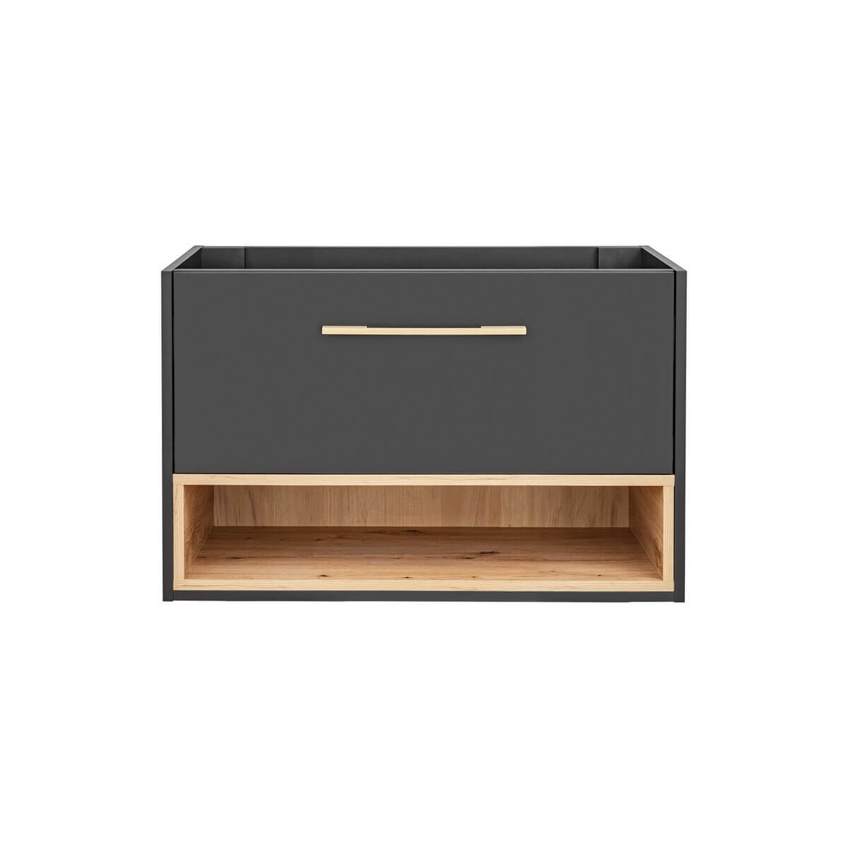 Valamukapp BORNEO COSMOS on 80 cm seinale kinnitatav valamukapp ühe sahtliga. Hall kosmos/ artisan tamm viimistlus, mõõtmed 80x57x46 cm (pikkus x kõrgus x laius).