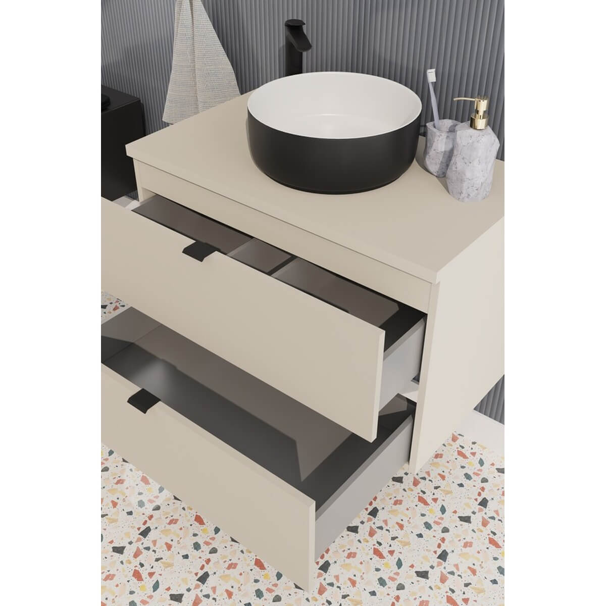Valamukapp DALIA CASHMERE on 80 cm seinale kinnitatav valamukapp kahe Soft Close sahtliga. Kašmiir matt viimistlus, mõõtmed 80x50x46 cm (pikkus x kõrgus x laius).