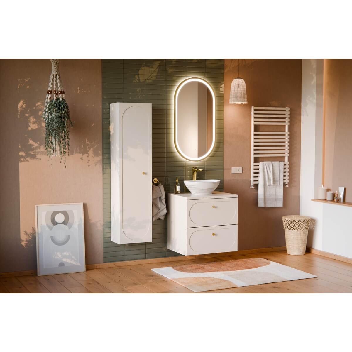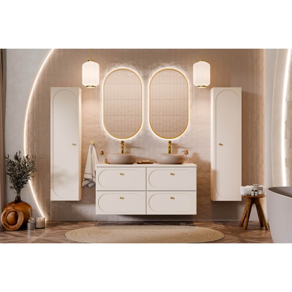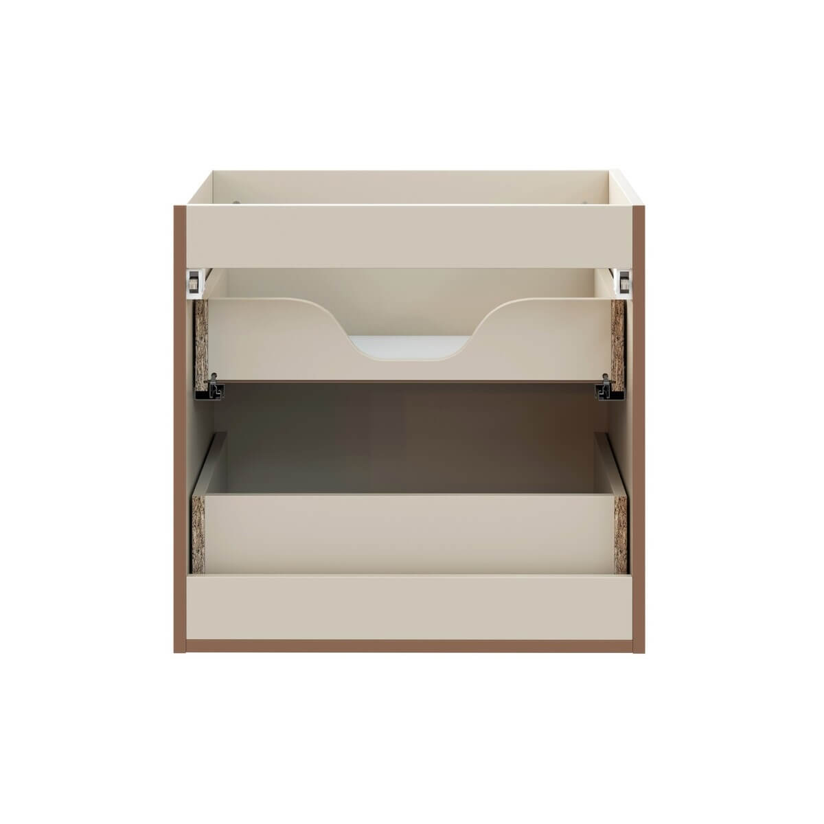 60 cm laiune kahe sahtliga valamukapp Donna Sand kollektsioonist on kaasaegne tõlgendus klassikalisest stiilist, mis on inspireeritud peenusest. Õrnad reljeefse soontega esipaneelid annavad kollektsioonile ainulaadse iseloomu ja kerguse. Kasutatud beež liivakarva dekoor on variatsioon kašmiirvärvidest, mis on vallutanud sisustustrendid, tuues interjööri soojust ja harmooniat. Kogu välimuse täiendavad kuldsed metallist käepidemed, mis rõhutavad elegantsi ja annavad viimistlusele väärikust.