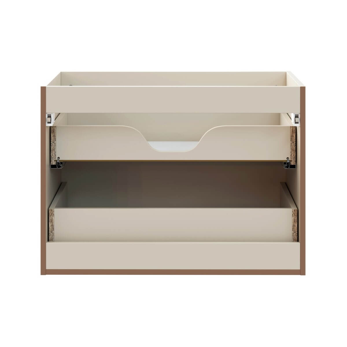 Kaks sahtlit pakuvad palju ruumi vannitoatarvikute hoiustamiseks, hoides ruumi korras. Soft Close süsteem suurendab kasutusmugavust, rõhutades tähelepanu detailidele igapäevasel kasutamisel. Mööbel on valmistatud vastupidavatest materjalidest nagu MDF plaat ja lamineeritud plaat, tagades esteetilise välimuse aastateks.
