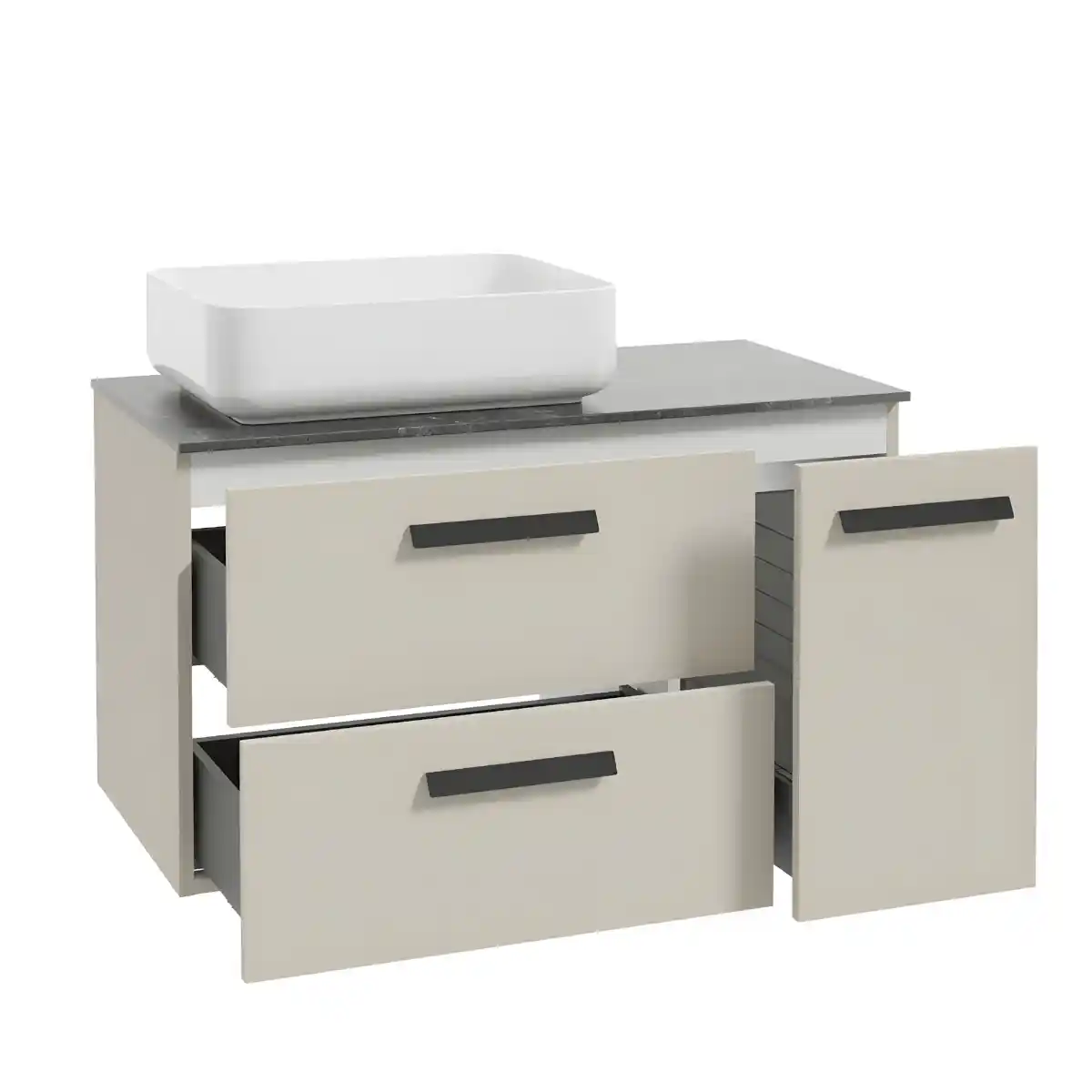 Valamukapp FARO D90 (2 sahtlit + pesukorvimoodul, vasak), kašmiir matt, 90 cm, seinale kinnitatav