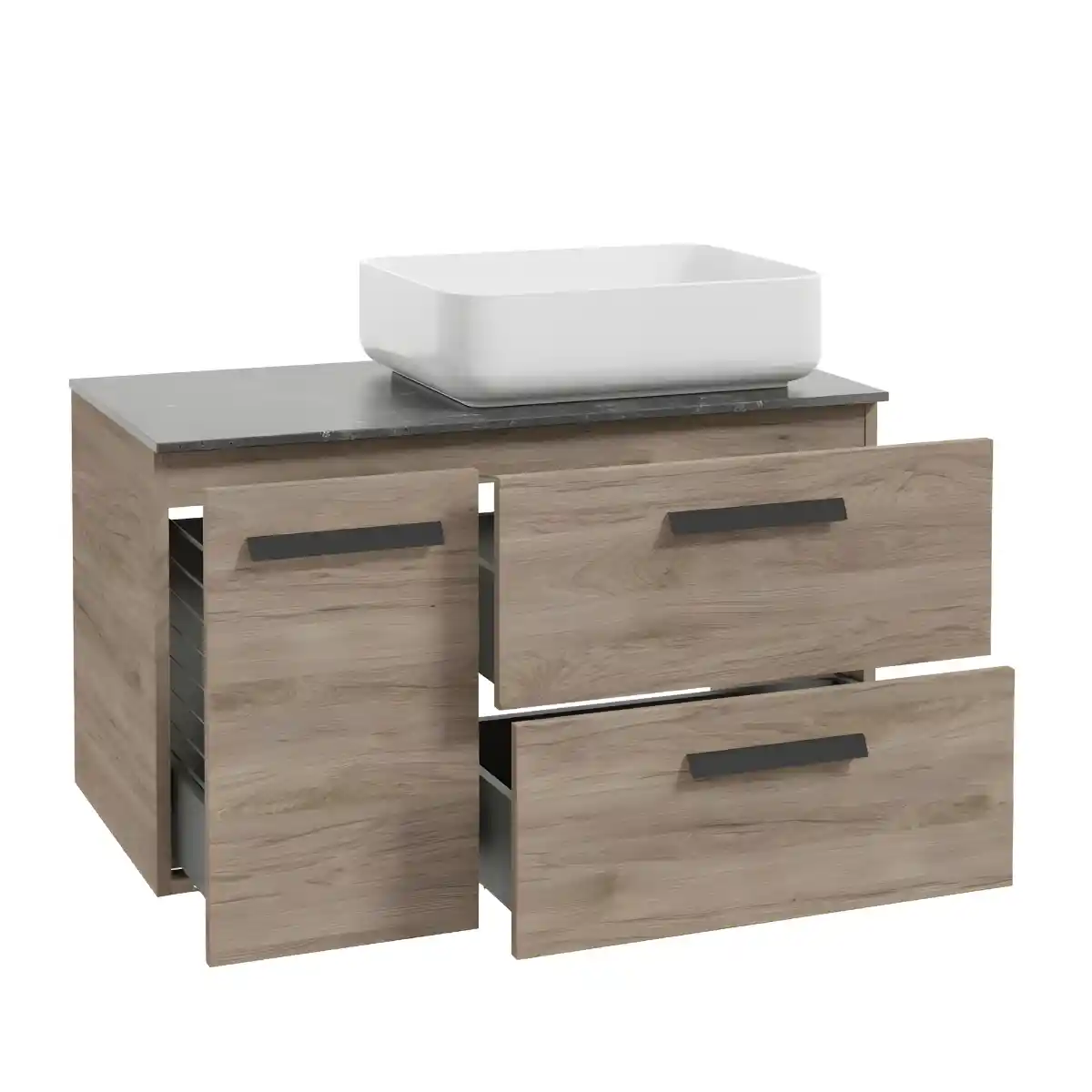 Valamukapp FARO D90 (2 sahtlit + pesukorvimoodul, parem), rockfordi pähkli dekoor, 90 cm, seinale kinnitatav