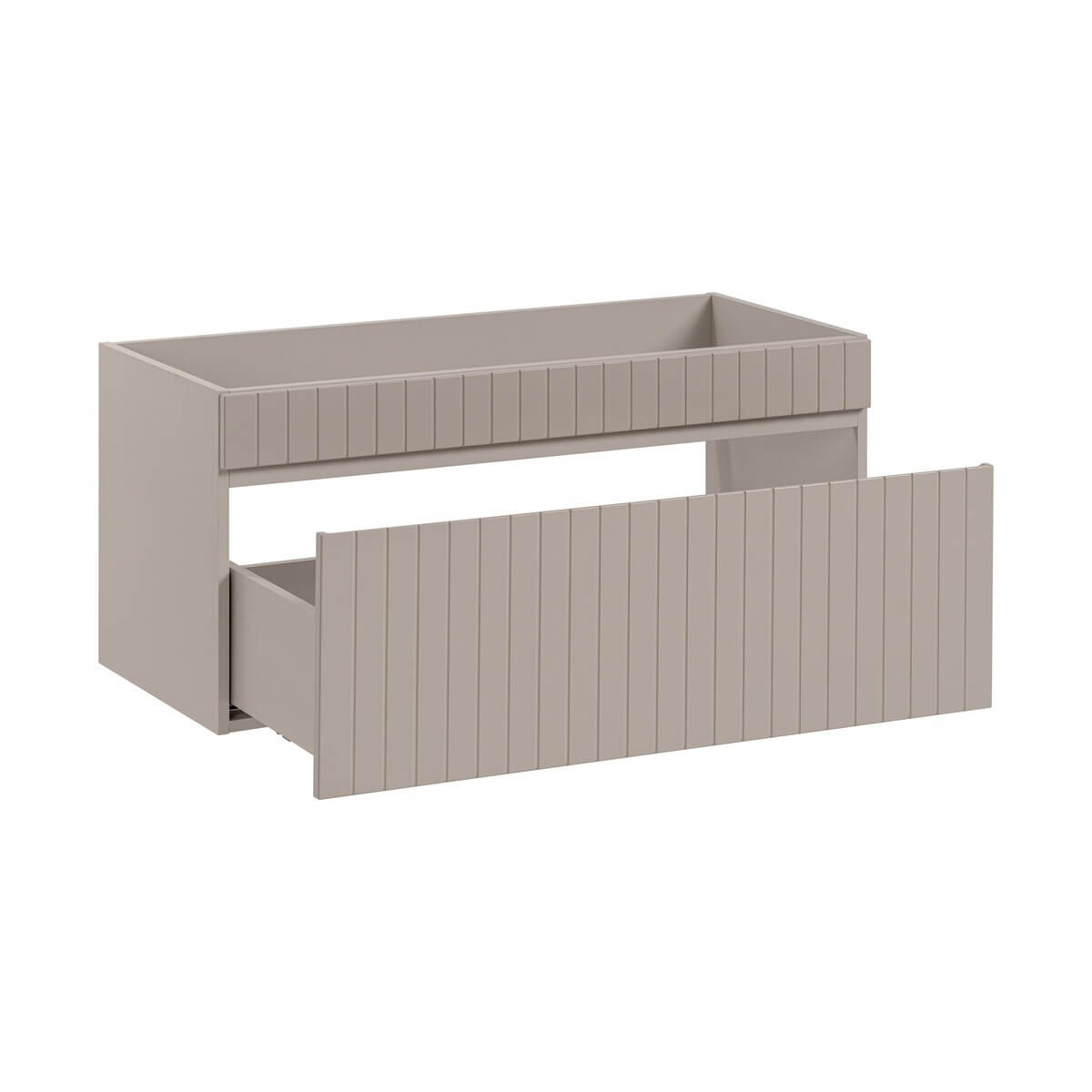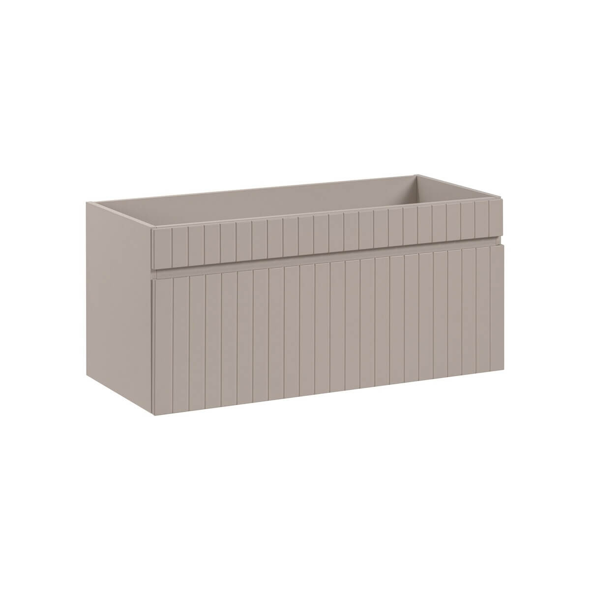 Valamukapp ICONIC CASHMERE on 100 cm seinale kinnitatav valamukapp ühe sahtliga. Kašmiir matt viimistlus, mõõtmed 100x46x45.6 cm (pikkus x kõrgus x laius).