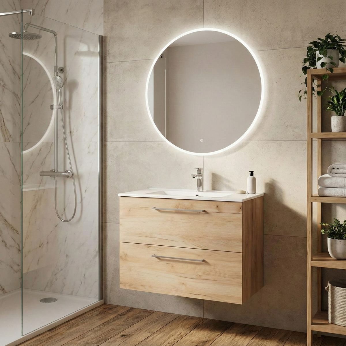 Valamukappi saab konbineerida lettvalamu või töötasapinna ja teasapinnapealse valamuga. Kui valida töötasapind, mis on kapist laiem, saab luua personaalse vannitoalahenduse, lisades juurde teisi sama kollektsiooni kappe või riiuleid. See võimaldab suurendada hoiuruumi ja säilitada vannitoas harmoonilise ilme.