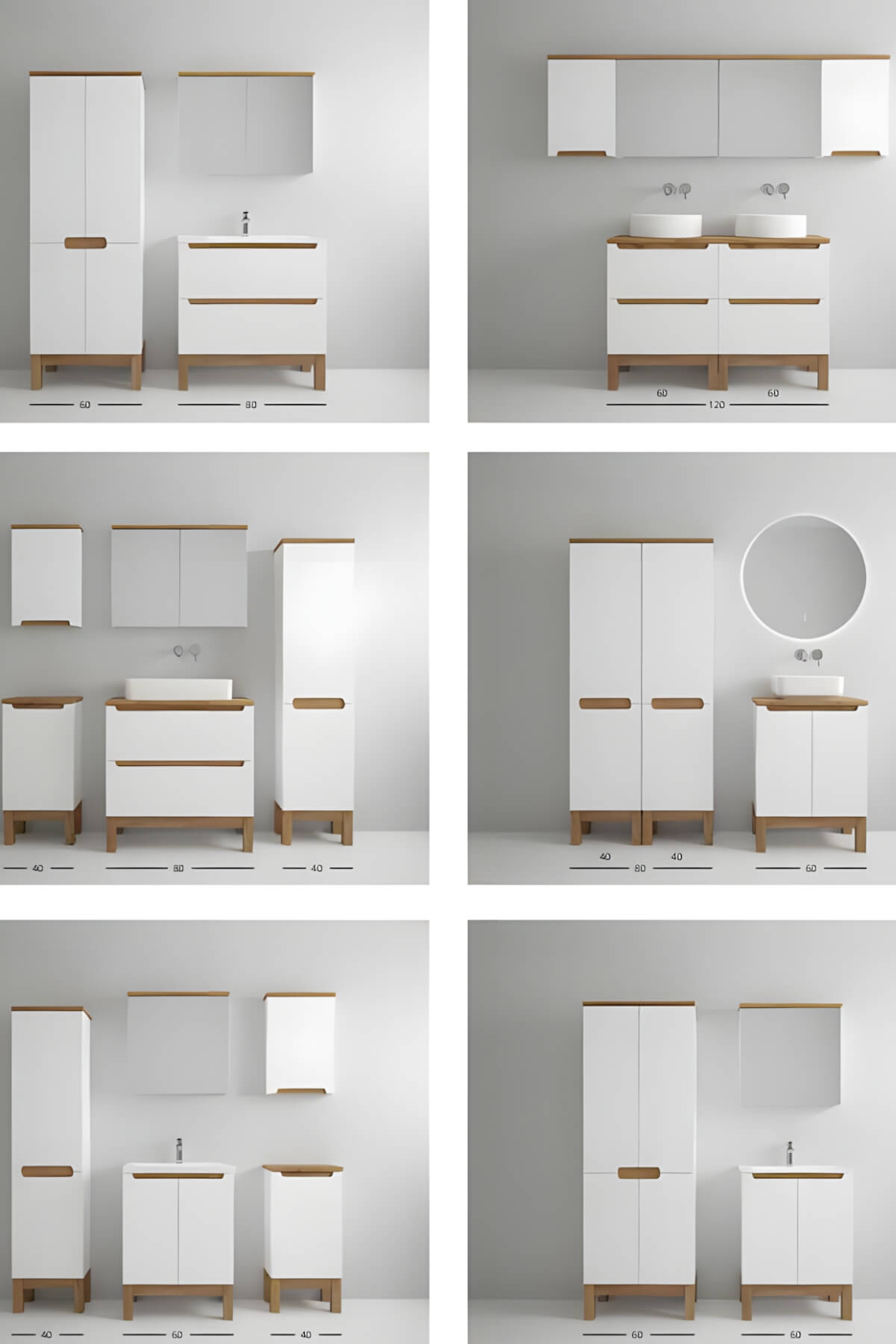 Ühendab minimalismi ja igapäevamugavuse: lai kahe uksega valamukapp, mille sees on sisemine riiul – hea koht igapäevatarvete hoiustamiseks. Valge kõrgläike ja kuldtamme detailide kooslus toob interjööri soojust; freesitud käepide jätab fassaadi puhtaks ning on käele mugav.