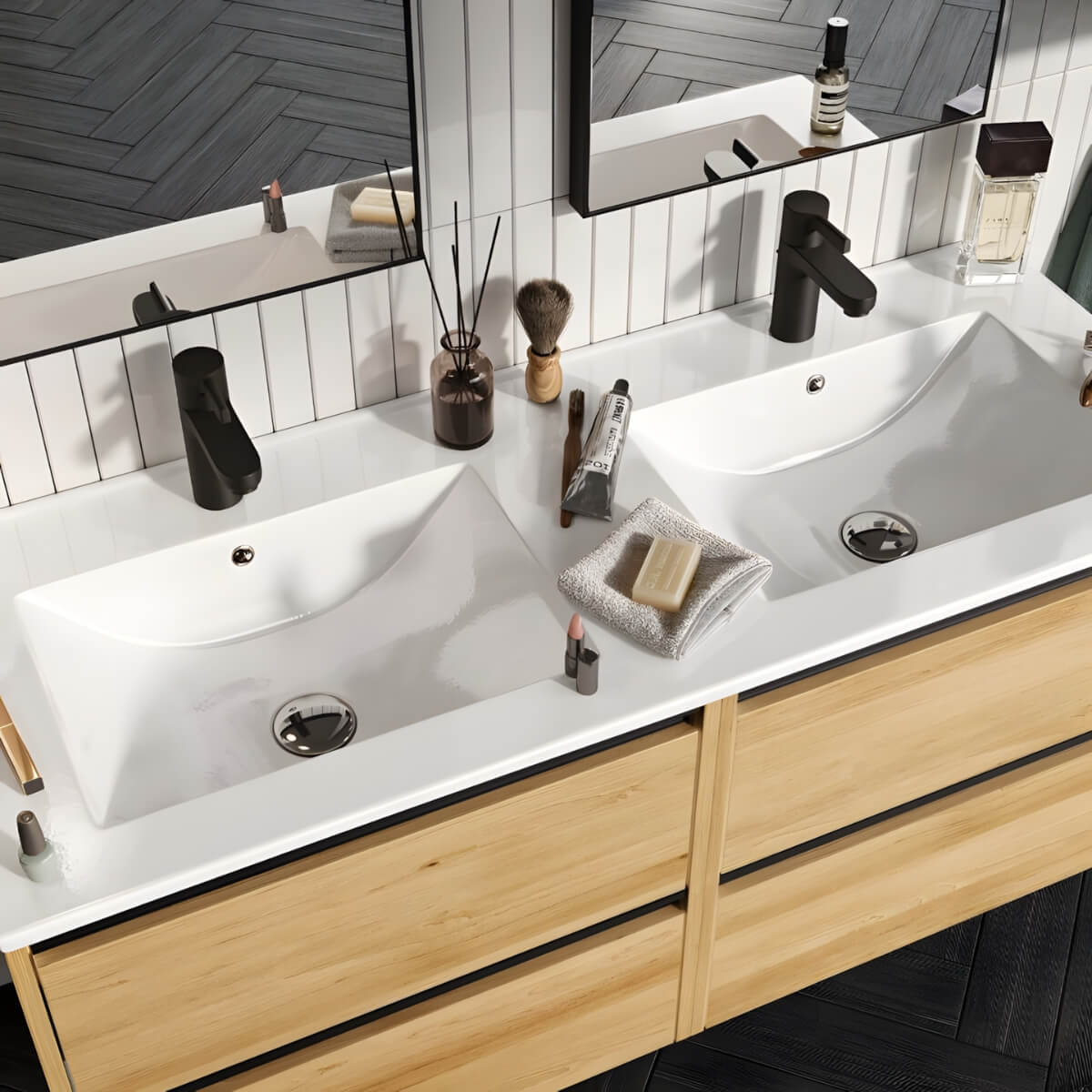 Vannitoavalamu kahe kraanikausiga PLAN 120 ühendab stiili ja praktilisuse. Selle modernne ja selge vorm loob vannitoas korrastatud ja kaasaegse üldmulje. Ruumikas pealispind valamu ümber pakub lisapinda tarvikutele, mis teeb igapäevase kasutuse veelgi mugavamaks. Valamu on valmistatud kvaliteetsest keraamikast, mis on tugev, vastupidav ja lihtsasti hooldatav. Materjal ei tuhmu ega muuda värvi, ei ima lõhnu ning säilitab oma läike ja värske ilme ka aastatepikkuse kasutuse järel. Sügav, kandiliste joontega kauss vähendab vee pritsimist ning tagab igapäevase pesemise mugavuse.