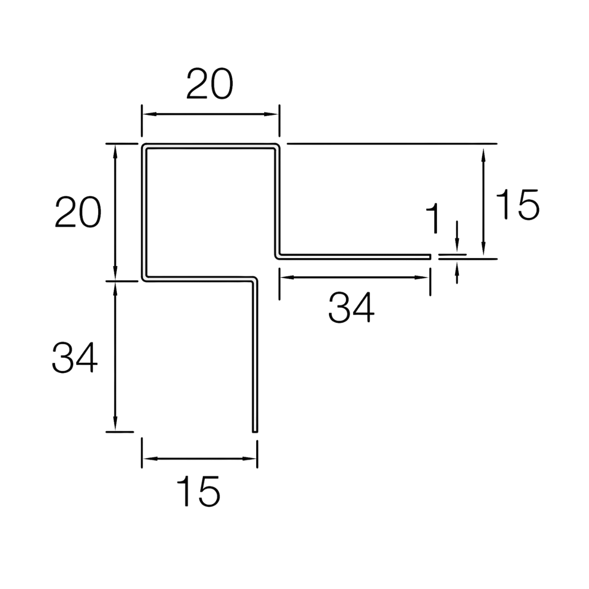 Mõõtmed: 3000 x 20 x 15 mm (pikkus x laius x sügavus).
